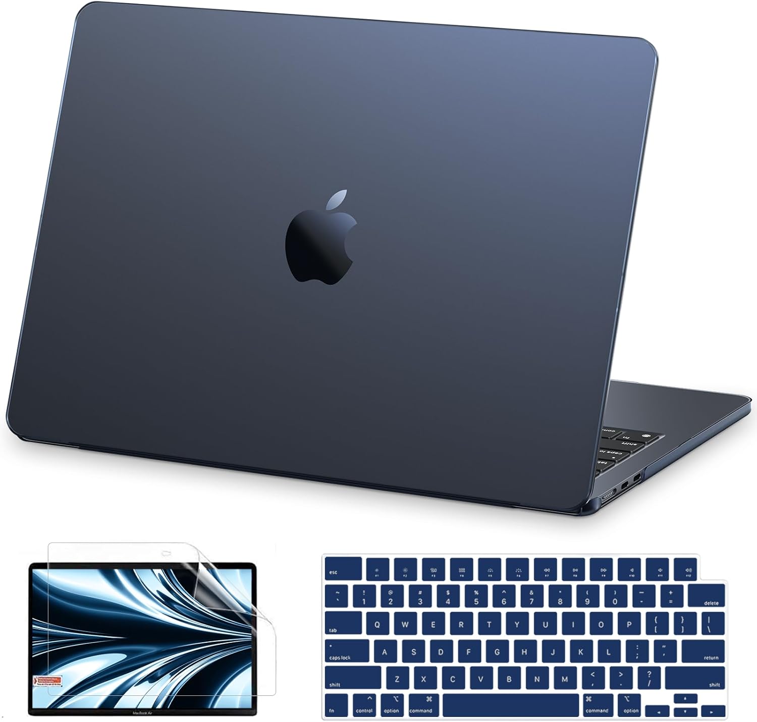 AKIT Compatible with MacBook Air 13 Inch M4 M3 M2 Case A3240 A2681 A3113 2025 2024 2022 [Bare Slim] [Full Body] 13.6 Inch Midnight Blue Clear Protective Hard Cover + Keyboard Skin + Screen Protector