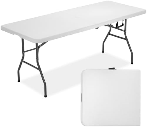 Multiple Uses:The folding table is light weight and fold in half design,it is perfect for both indoor & outdoor use, such as party, weddings, garden, dining.