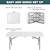 FDW 6 Foot Outdoor Dining Table, Foldable Portable Rectangular Plastic Folding Table with Built in Carrying Handle for Party and Wedding Use, White