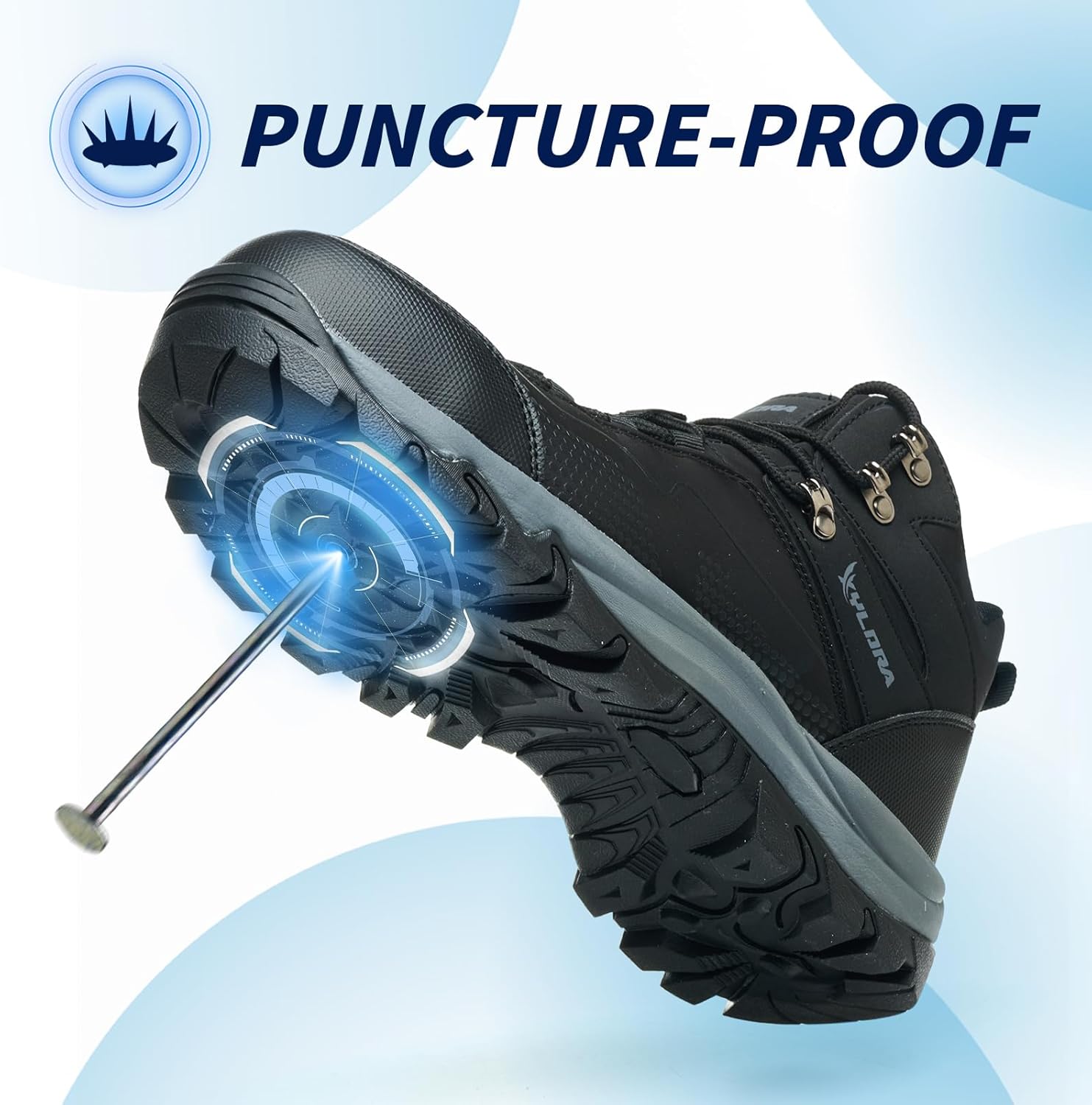 Waterproof Steel Toe Boots for Men Wide Width Non Slip Work Boots Lightweight Slip Resistant Safety Shoes Indestructible Construction Composite Toe Sneakers
