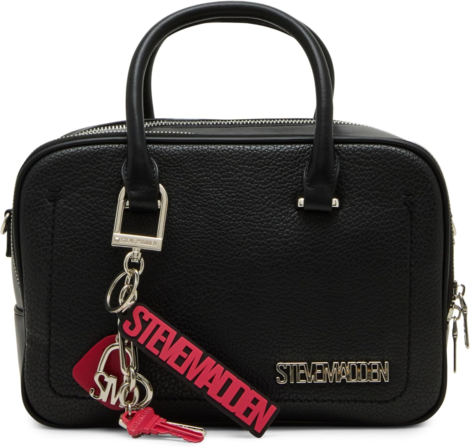 The Steve Madden BCHIPP Double Compartment Satchel is the perfect balance of sophistication and versatility. With its double-compartment design, this satchel offers ample space for organizing your essentials. The 4" drop handle allows for easy carrying, while the 23" adjustable shoulder and crossbody straps provide hands-free convenience. The bag is adorned with stylish Steve Madden key and heart-shaped hang-off charms, adding a playful touch to its sleek appearance. The zipper closure ensures everything stays secure.