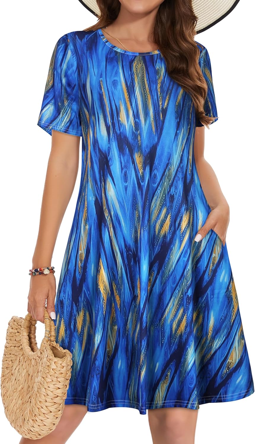 Summer Dresses for Women Casual Tshirt Short Sleeve Floral Sundress Beach Cover Ups with Pockets