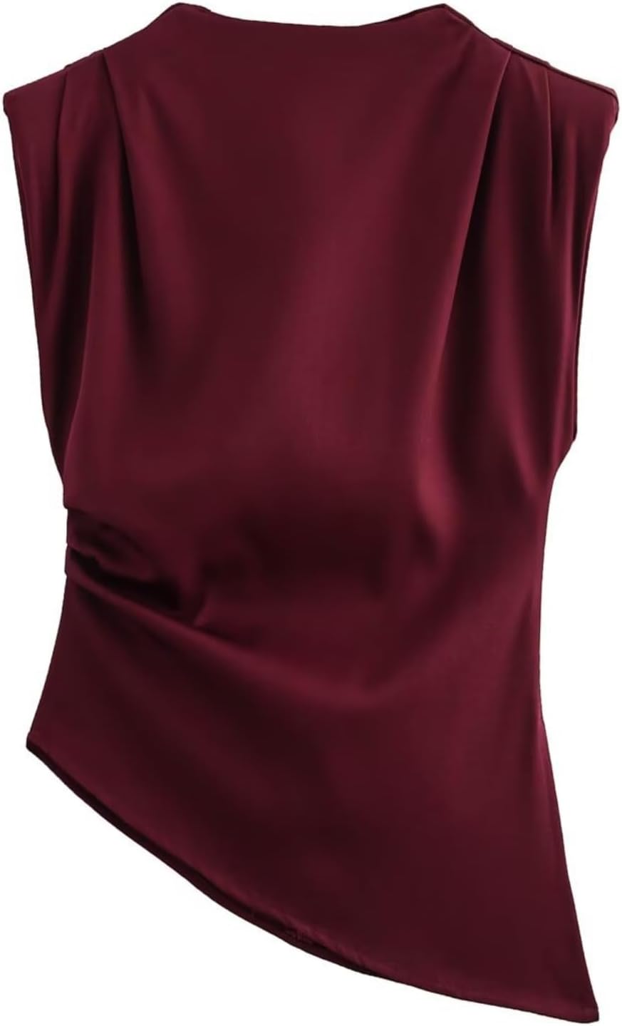Perbai Womens Shoulder Pad Tank Top Mock Neck Asymmetrical Hem Zipper Ruched Sleeveless Summer Shirt Blouse