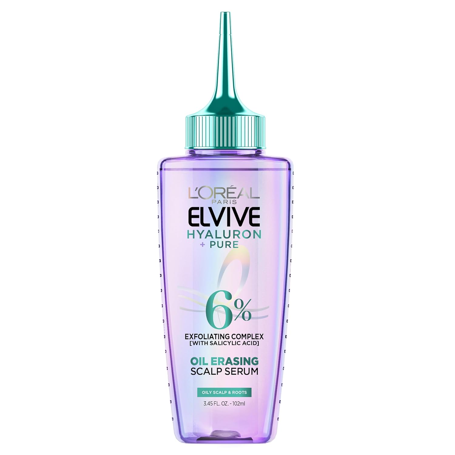 L'Oreal Paris Elvive Hyaluron + Pure Oil Erasing Scalp Serum with Salicylic Acid For Oily Hair, 3.45 Fl Oz
