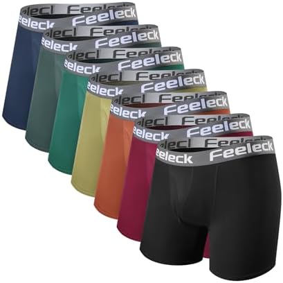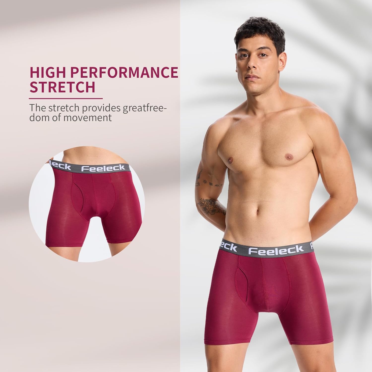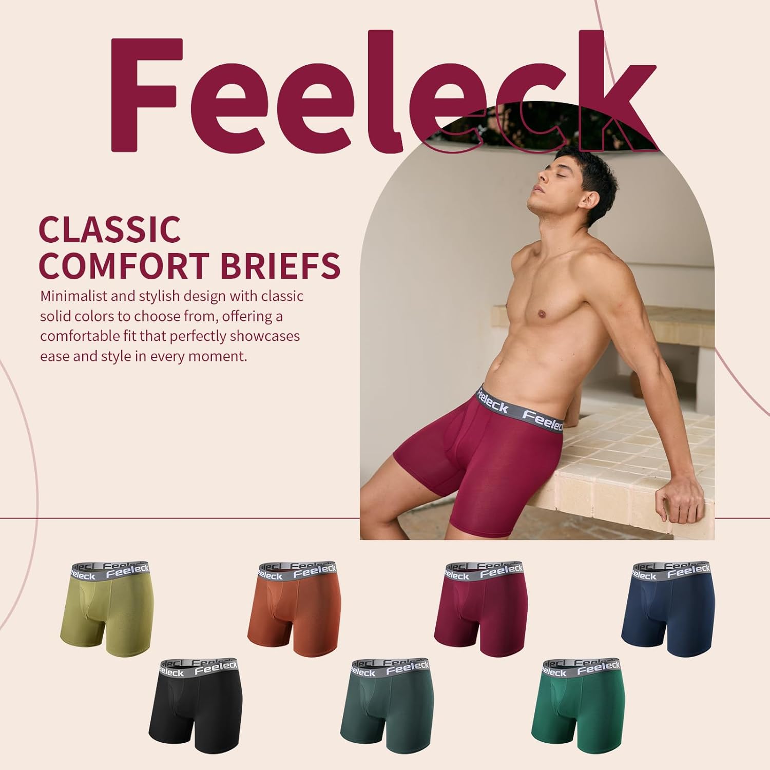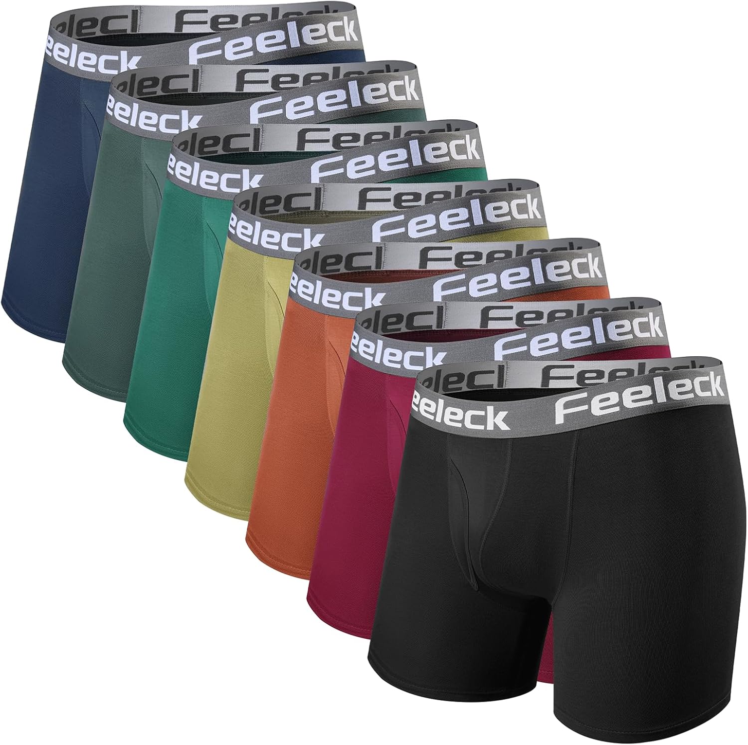 Feeleck Mens underwear Rayon Boxer Briefs 7-Pack,Soft & Moisture Wicking with Fly Underwear for Man