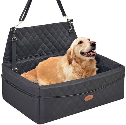 Dog Car Seat for Large/Medium Pet, Anti Slip Bottom Dogs Booster Seat for All Seasons,Pet Travel Bed with Thick Dog Sofa Cushion,2 Safety Leashes(Black)