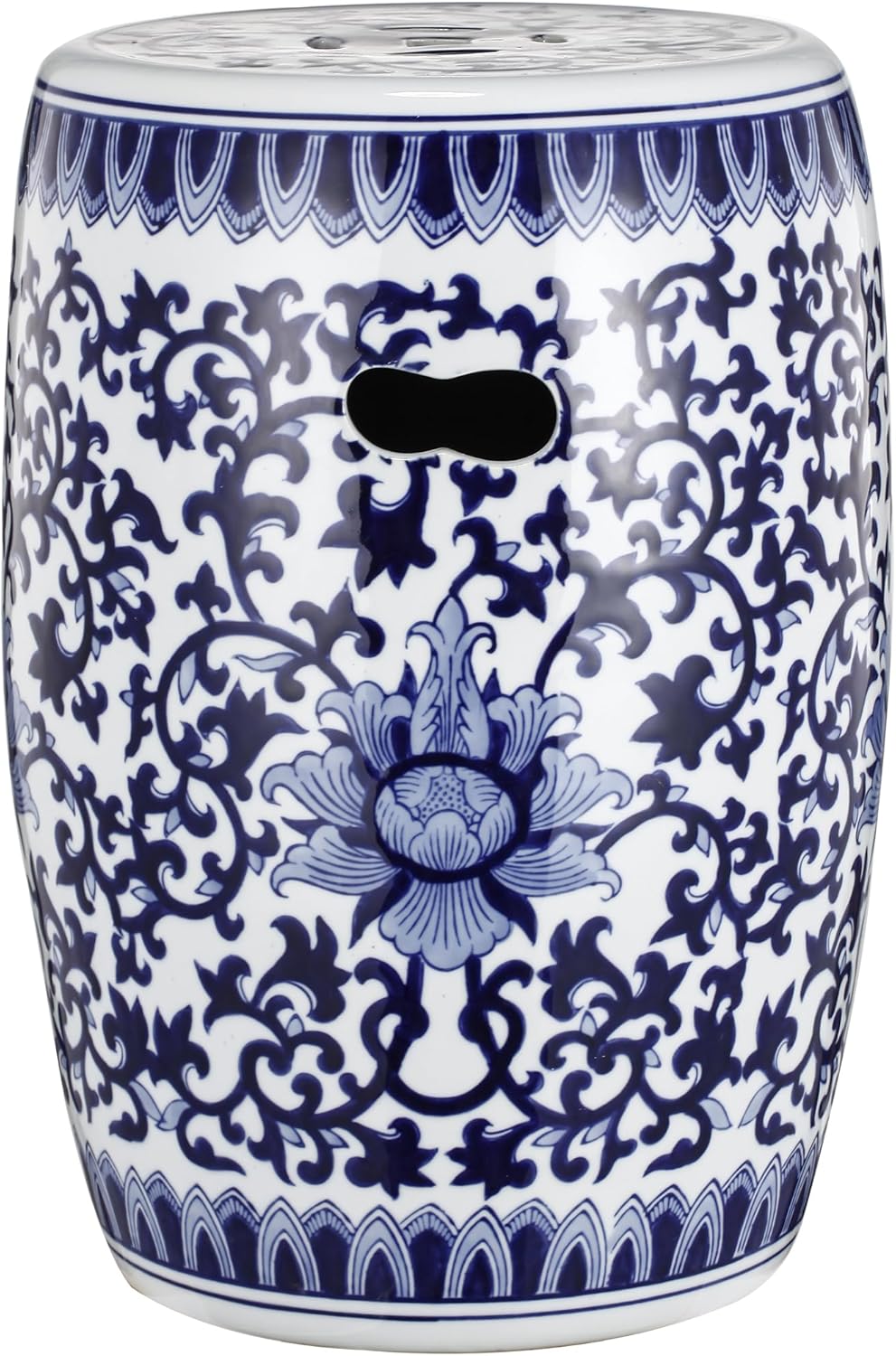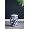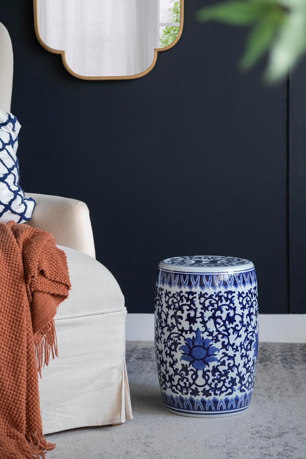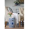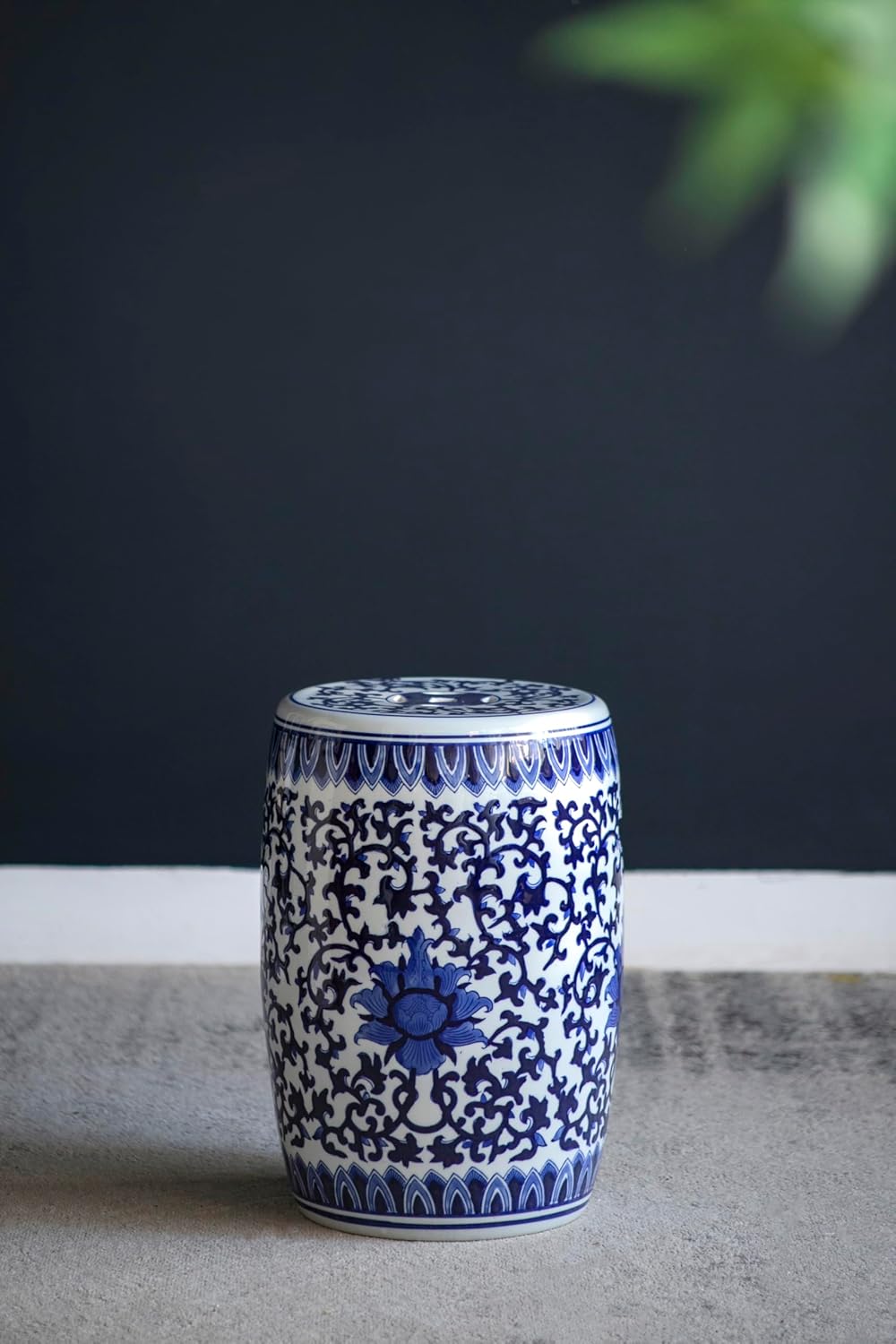 Ceramic Garden Stool, Blue and White Plant Stand & Side Table, Outdoor Indoor Decor, 11" Diameter