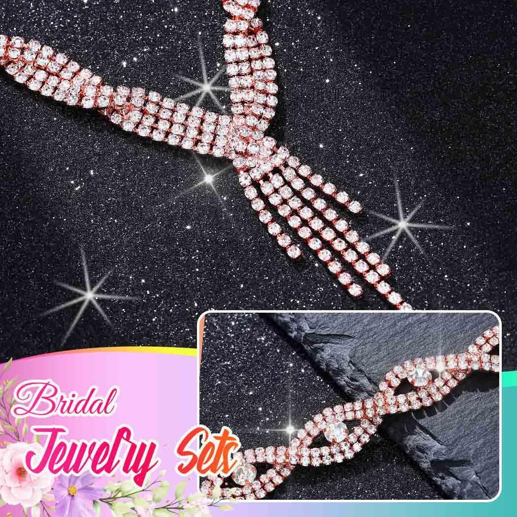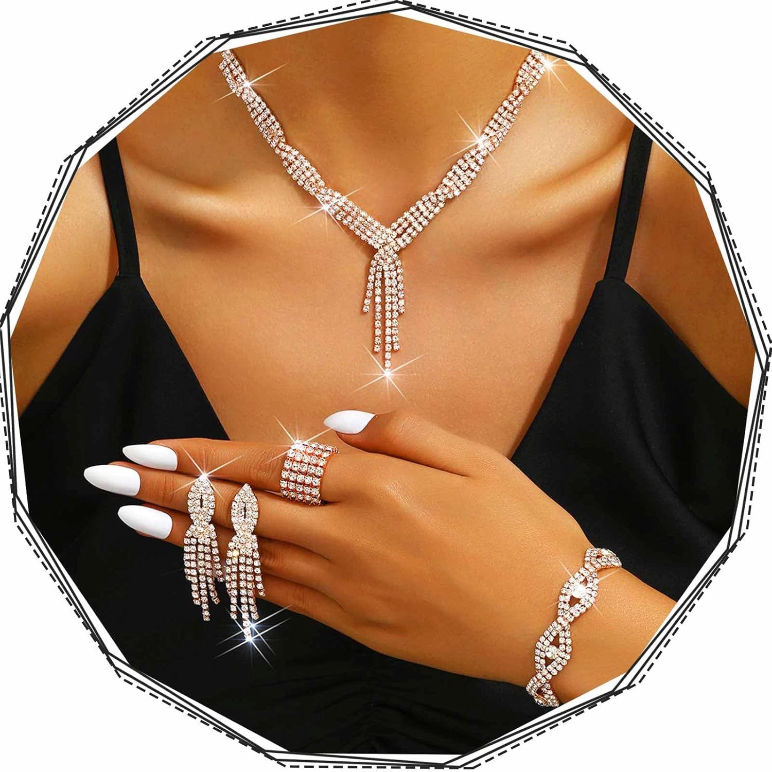 Brishow Rhinestone Bridal Jewelry Set for Wedding Necklaces and Earrings Formal Silver Necklace Bracelets Set for Women
