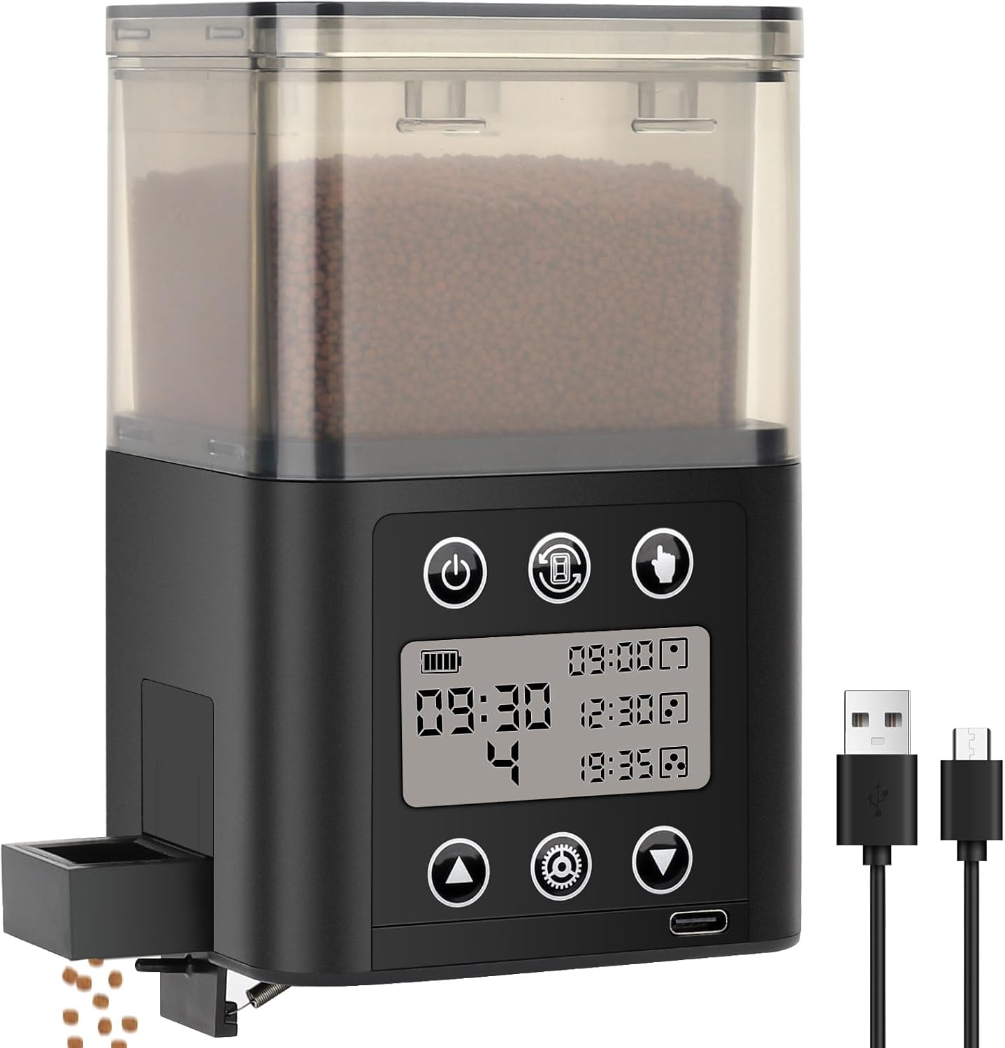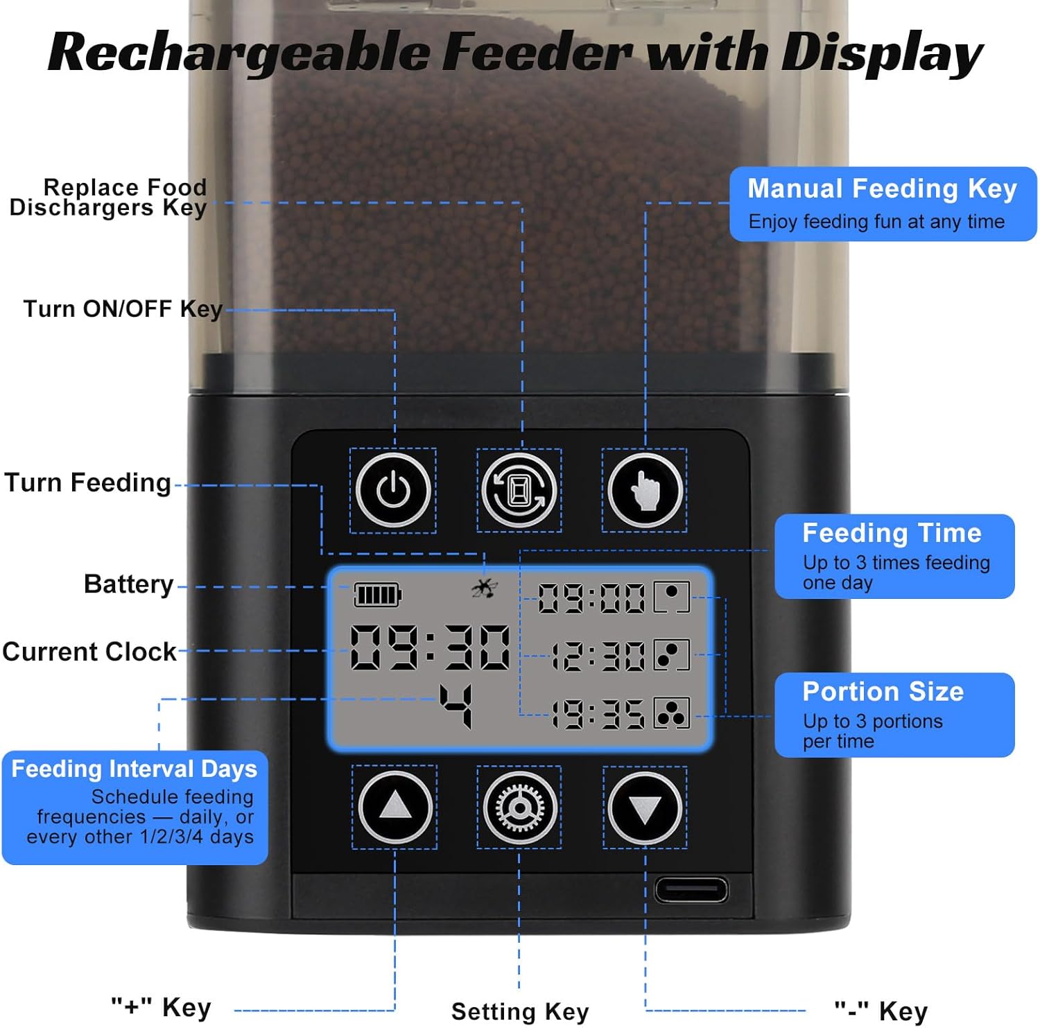 Smart Automatic Fish Feeder for Aquarium - [2025 Upgraded] 320ml Large Capacity & USB Rechargeable Fish Feeder Automatic Dispenser with LCD Display, Programmable Timer for Frequency & Portion Control