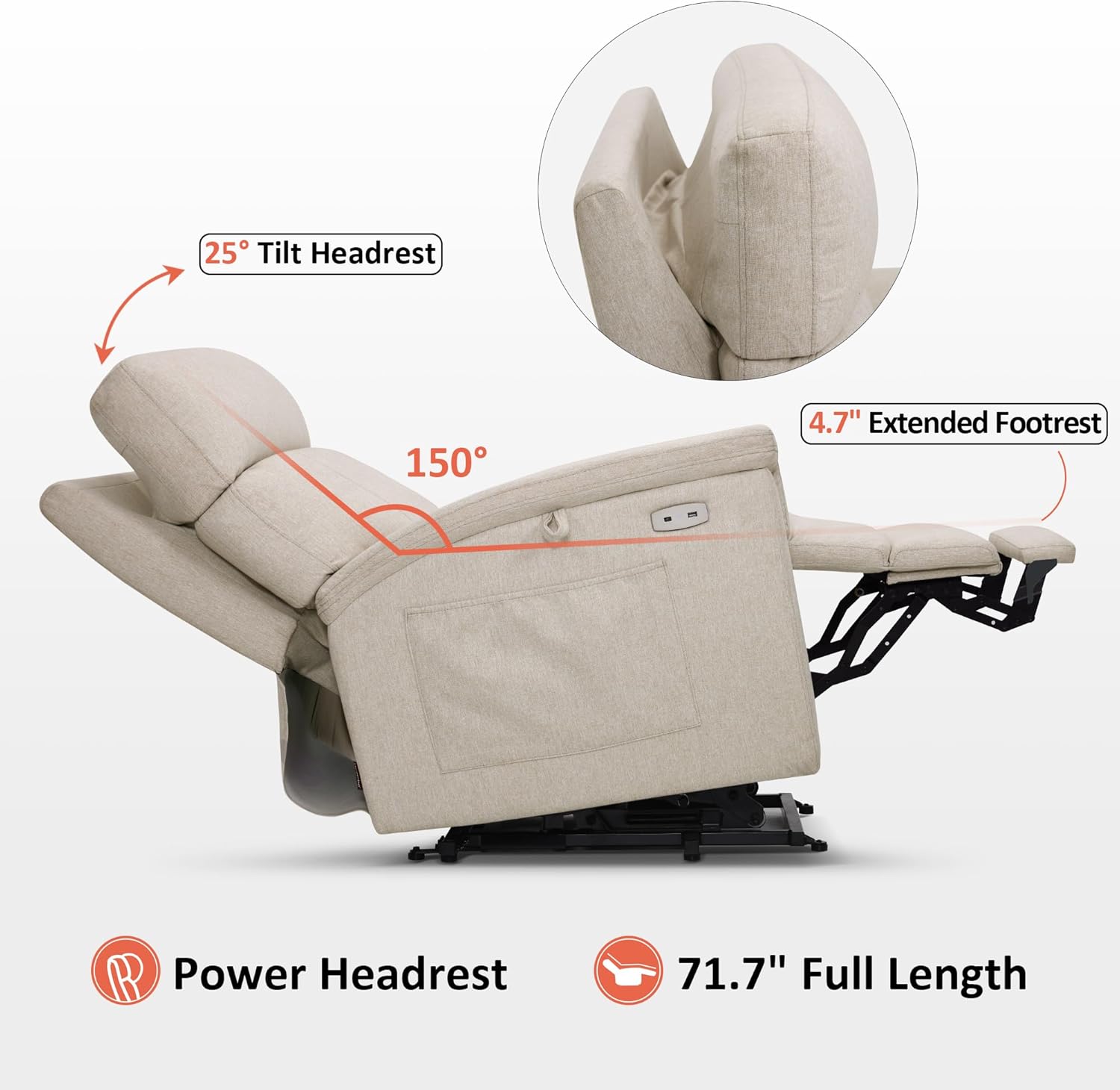 Power Lift Assistance: Counter-balanced lift mechanism to assist the senior in standing up easily, and smoothly adjusting to the lift or reclining position you prefer by pressing buttons (Max reclining angle: 150°)