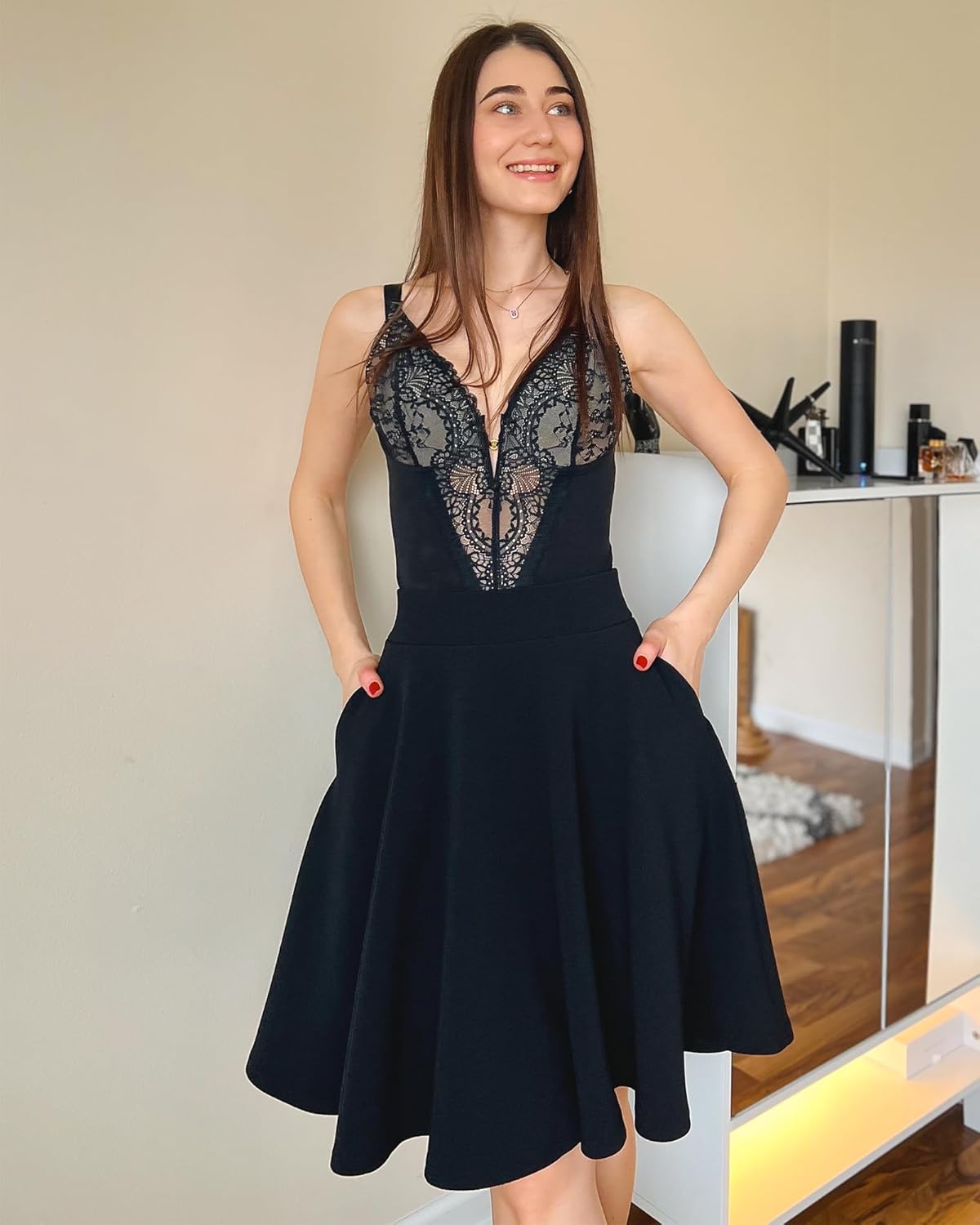 STELLE Women's 21" Knee Length Skirts with Pockets Casual Basic Midi Skirt Stretchy High Waisted Skater Flared Pleated