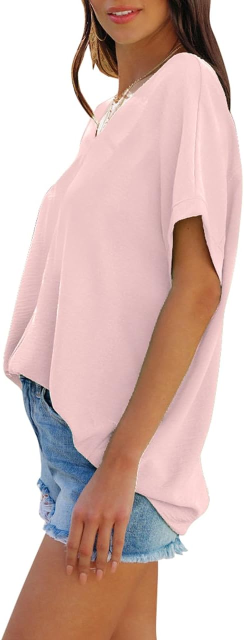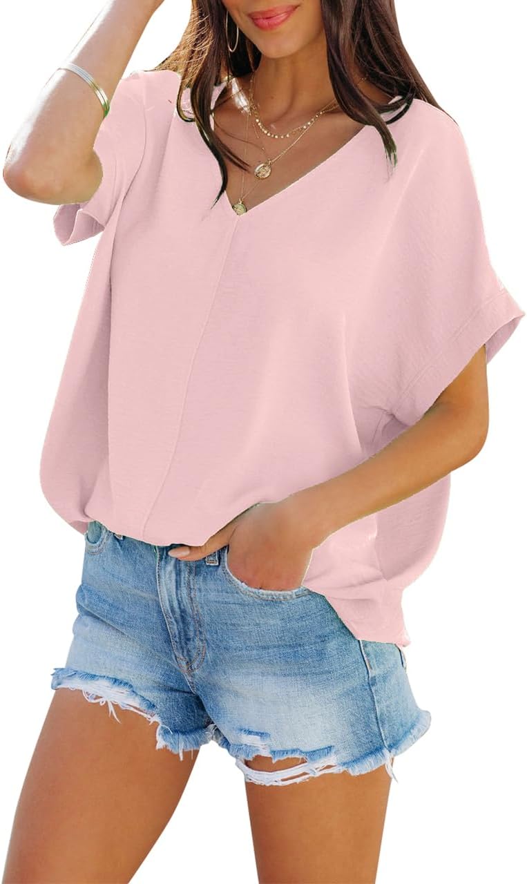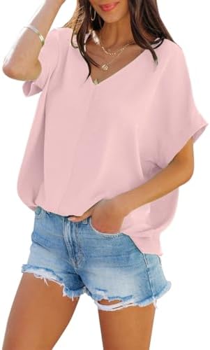 cordat Womens Summer Boho Shirts Hawaiian V Neck Loose Short Sleeves Dressy Tops Blouse