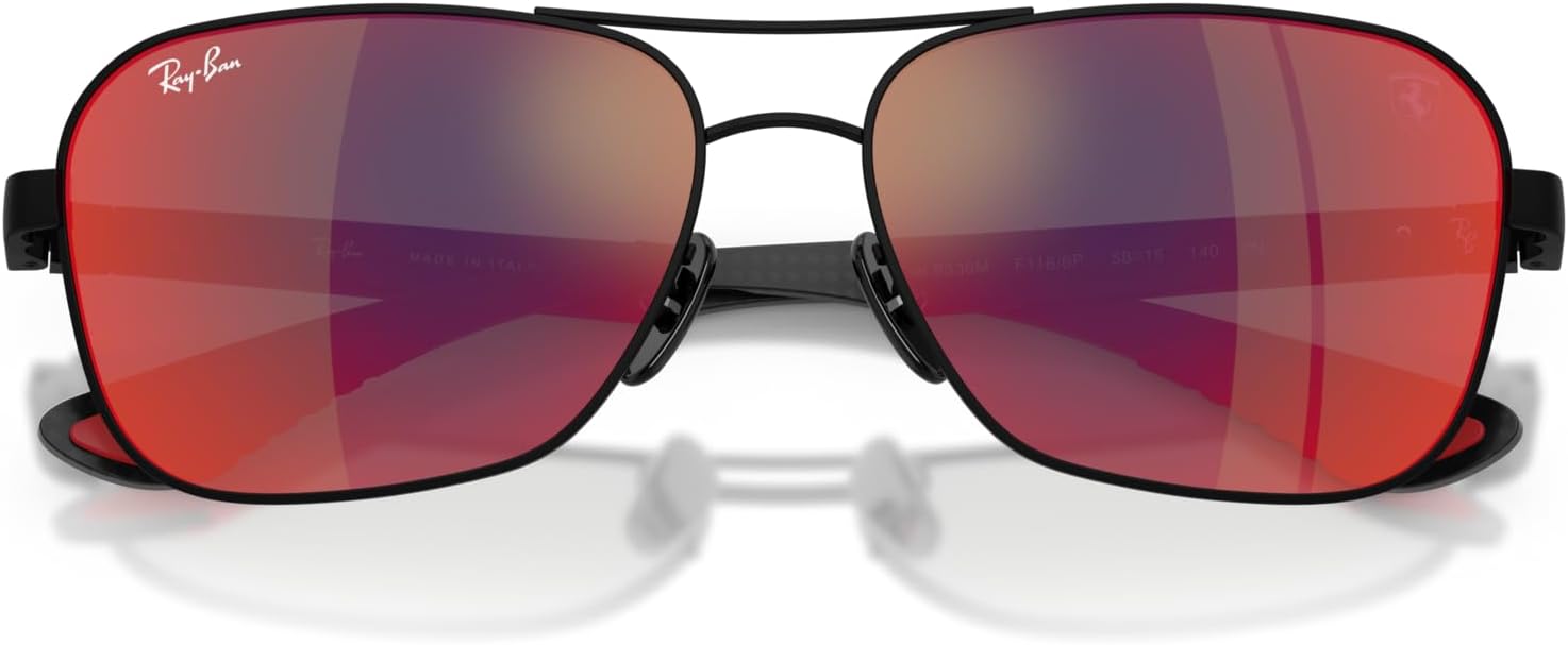 Ray-Ban's iconic caravan gets an F1 make over in the sleek RB8336M Scuderia Ferrari Collection. Featuring a metal front and carbon fiber temples, this legendary style is infused with dynamic Scuderia Ferrari energy. Ray-Ban sunglasses sold by authorized sellers, like Amazon, are eligible for all manufacturer warranties and guarantees. Click on the Ray-Ban link above the product title to shop the entire Ray-Ban sunglass and eyeglass assortment.