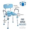 ✔ Tool Free Assembly: Easy to assemble in 3 minutes,tool-free removal of legs.Comes with padded armrests to easily lift or move the chair;Suitable for the bariatric, elderly, seniors, adults, disabled, pregnant women;The pale blue makes it easier for patient to see against the white tub.