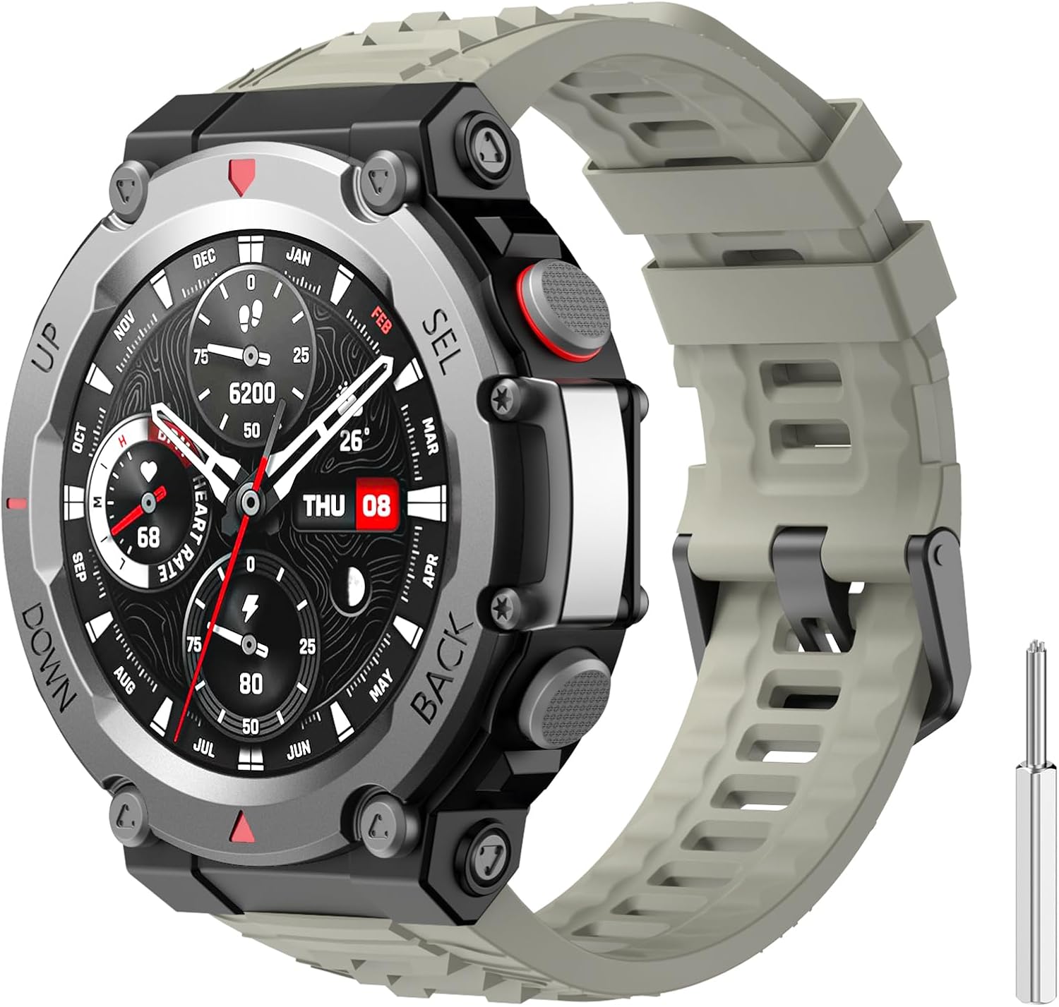 TiMOVO Rugged Sports band Compatible with Amazfit T-Rex 3, Soft Silicone Adjustable watch band for T-Rex 3, with 1 Install Tool, Rock Gray