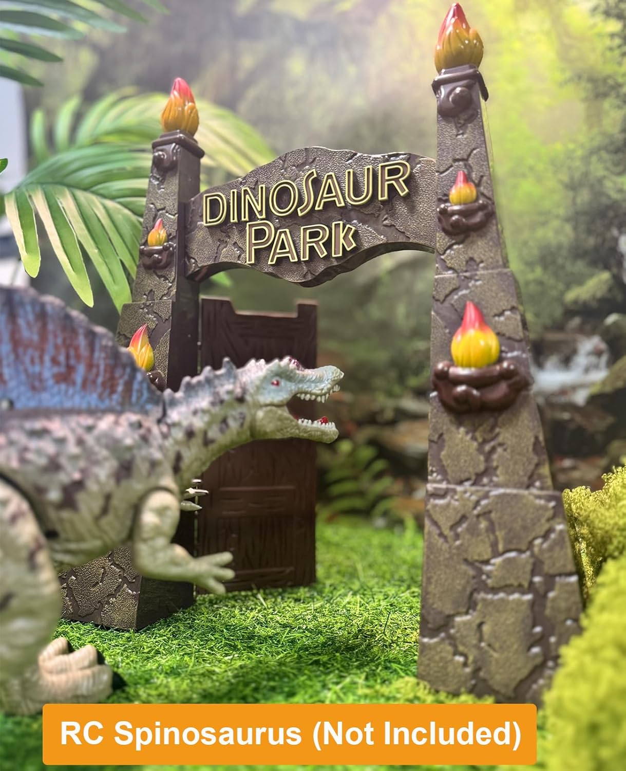 Realistic Dinosaur Park Set: The 12inches realistic dinosaur park gate makes quite the centerpiece whether you are recreating scenes from the films or inventing a "Dinosaur Park" of your very own. A fantastic addition to any dinosaur toys, such as dinosaur truck, rc dinosaur, etc.