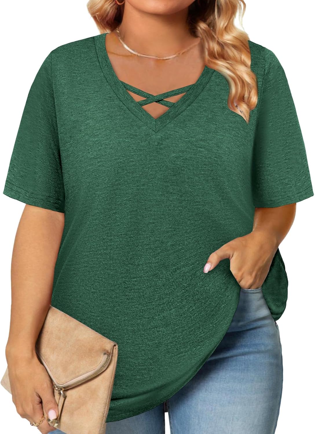 Plus Size Tops for Women Summer Trendy Criss Cross Shirts Oversized Casual Loose Fit Tunic Tops