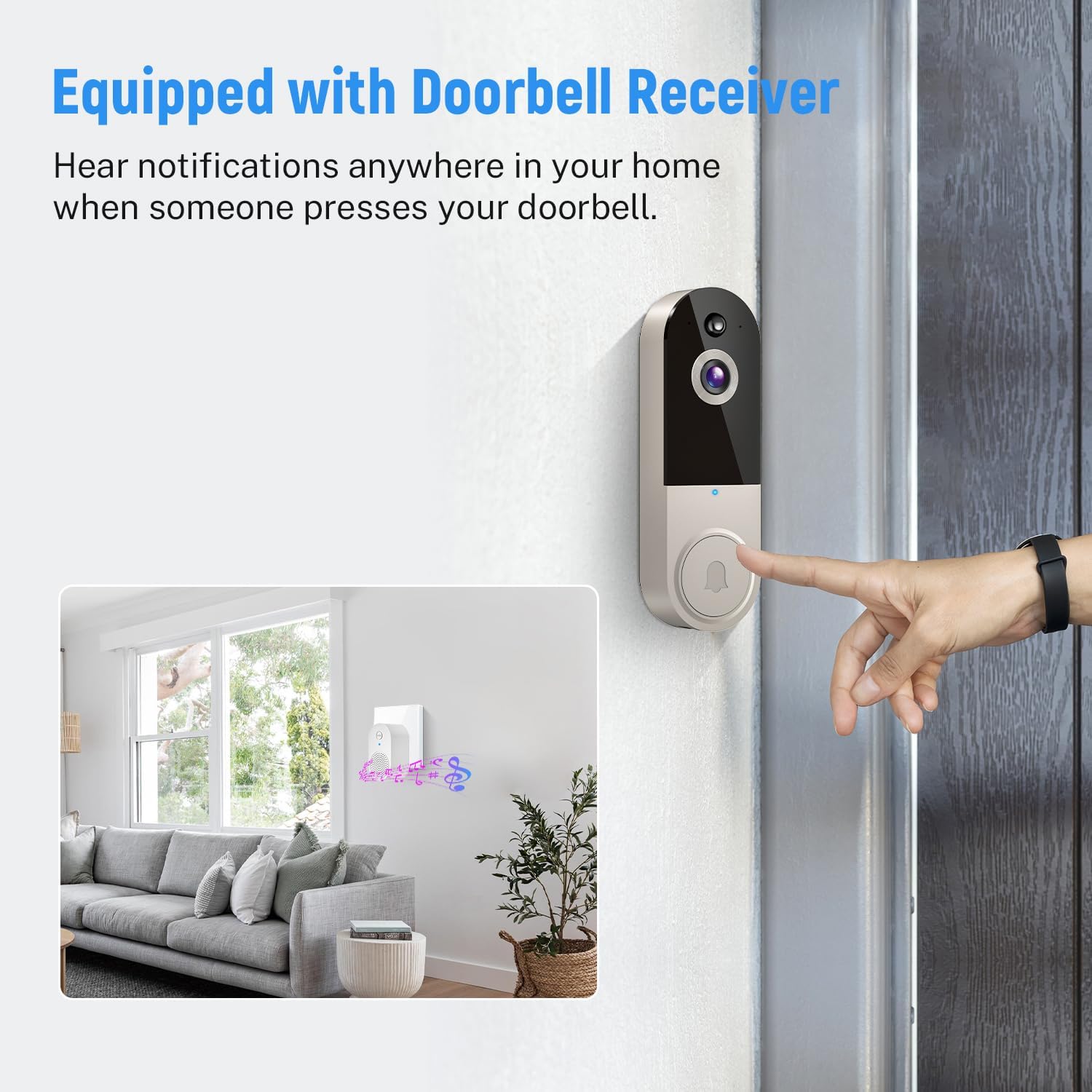 1080P Smart Wireless Video Doorbell Camera, AI Human Detection, 2.4G WiFi, Two-Way Talk, Battery Powered, Night Vision, Real-Time Alerts, Weather-Resistant, Cloud Storage (Linen)