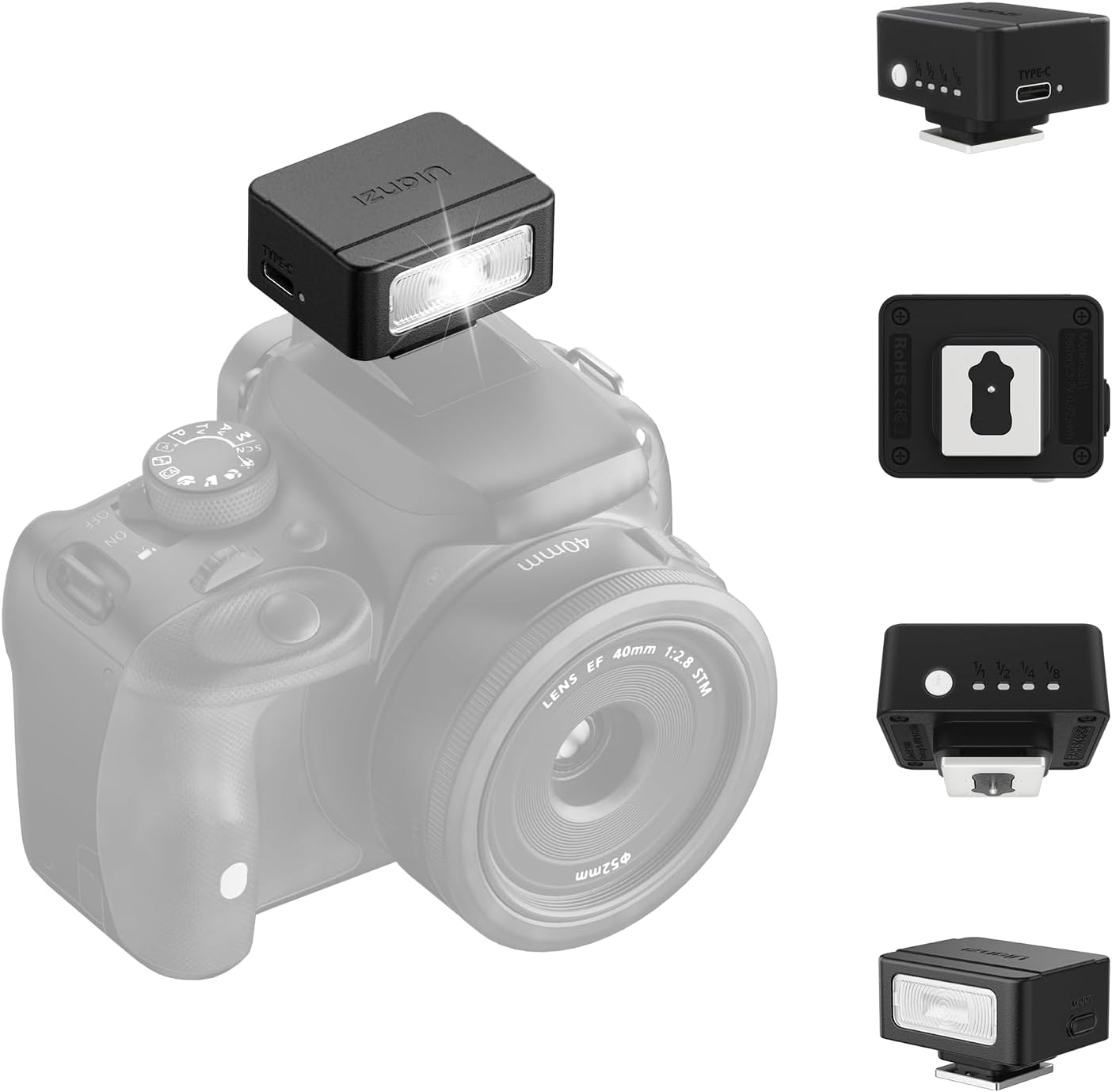 【Fast Charging and Long Battery Life】 Built-in 250mAh lithium battery supports over 500 full-power flashes per charge. The USB-C fast charging system (5V/1A) fully recharges the device in just 60 minutes and allows simultaneous charging and usage for uninterrupted shooting.