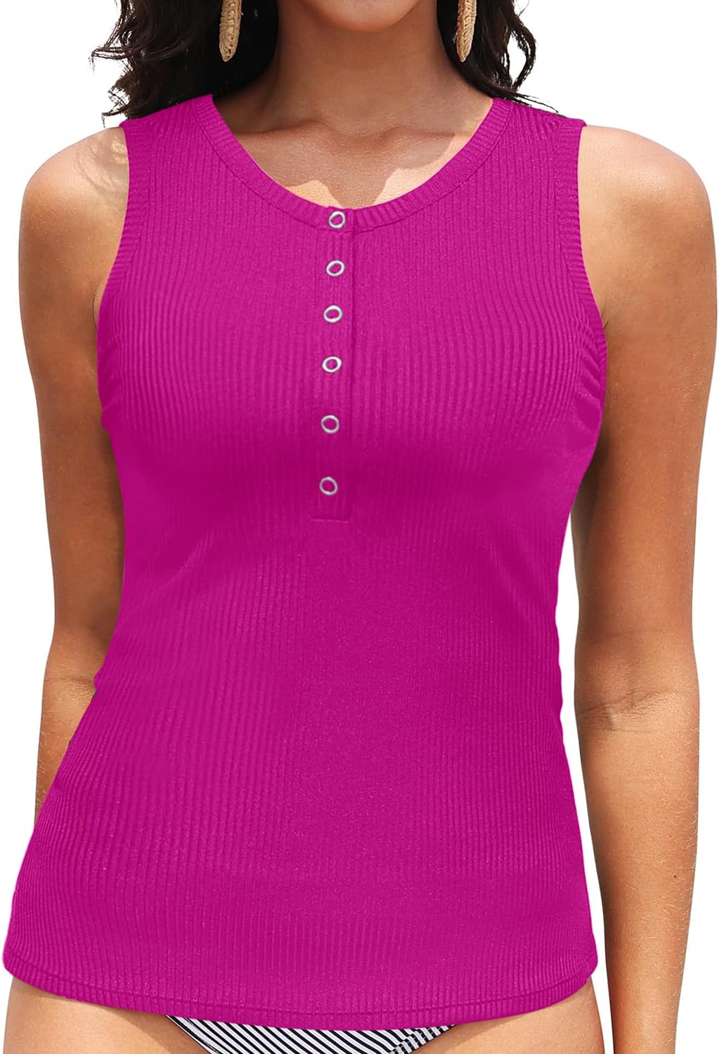 Daci Tankini Tops for Women High Neck Swim Top Tummy Control Bathing Suit Top Modest Swim Tank Top No Bottom