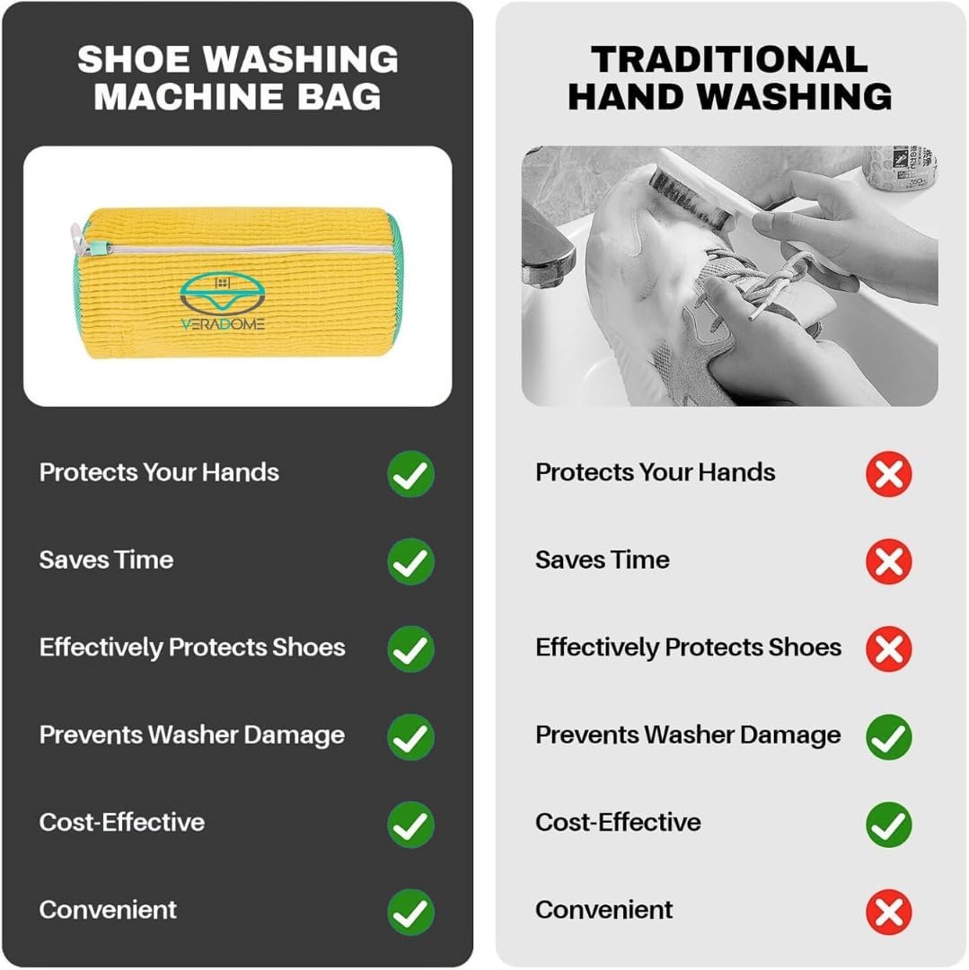 Protected wash : Veradome shoe washing bag’s long microfiber strands movements makes your sneaker cleaning gentle yet deep cleaning. The shoe washing bag is designed for washing shoes, suitable for machine washing and drying operations, so you don't have to spend time scrubbing your shoes by hand and can spend more time on other activities.