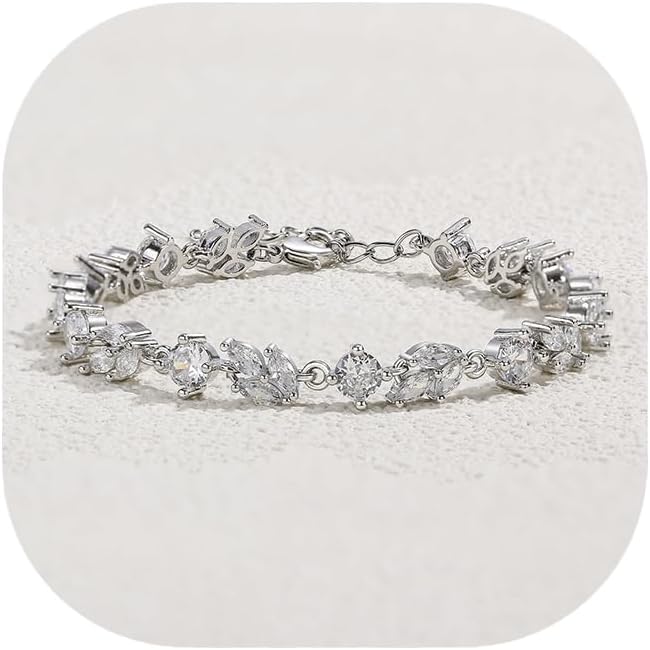 Crysdue Wedding Bridal Link Bracelet for Brides Bridesmaids, Marquise Cubic Zirconia Tennis Bracelets for Women Prom Jewelry