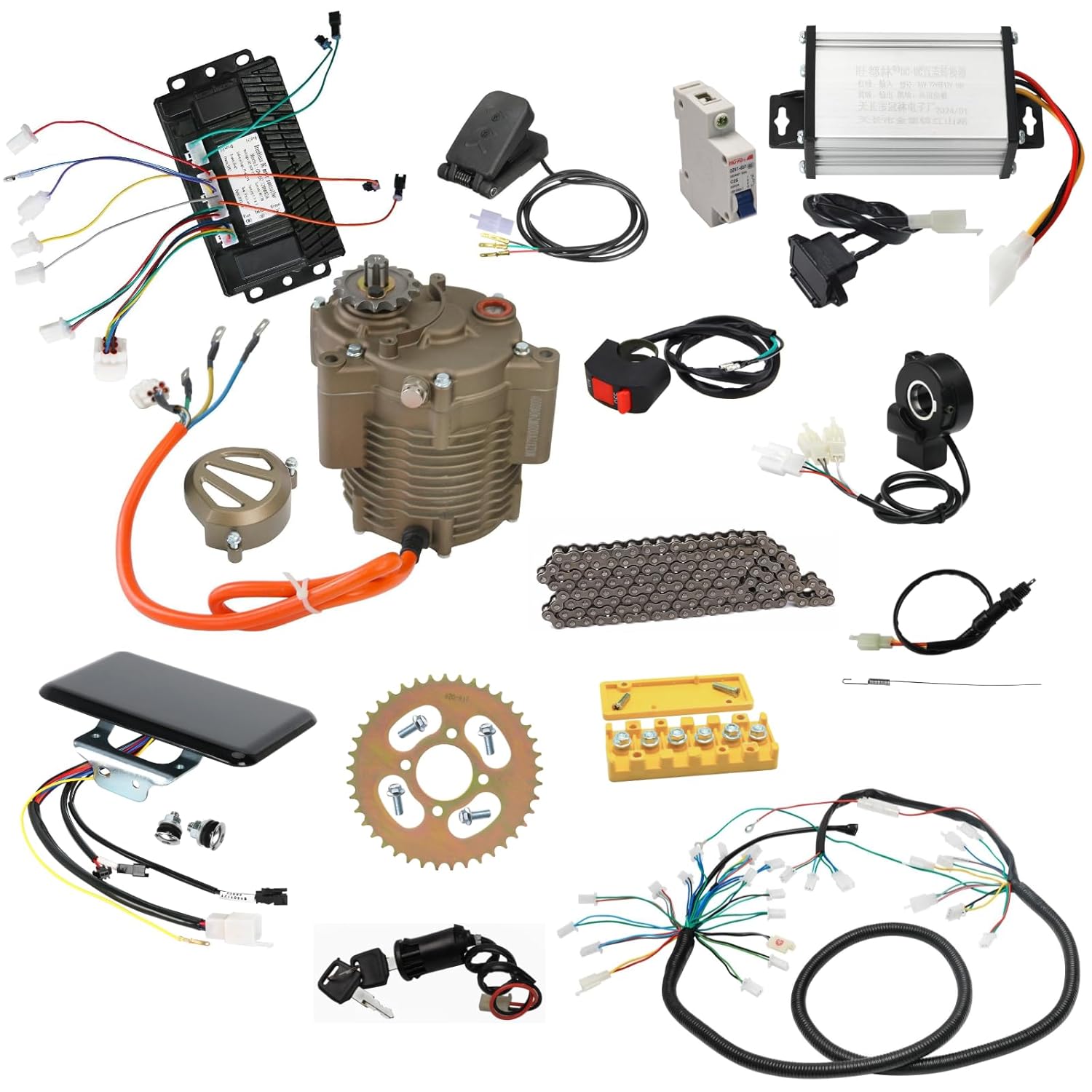 Complete Installation Kit: Includes motor, controller, LCD display, chain, sprocket, and all necessary switches for a seamless setup.