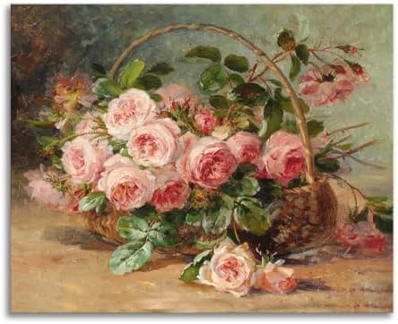 Transform your living space with this exquisite vintage-style canvas wall art measuring 12x15 inches. The stunning piece features a classical still life composition of delicate pink roses nestled in a rustic basket, painted with masterful attention to detail. The soft, romantic color palette combines blush pinks and deep rose hues with rich green foliage, creating a timeless aesthetic that adds elegance to any room. The artwork's textured brushstrokes and dimensional quality bring depth and character to your walls, while the traditional subject matter evokes the charm of European classical painting. Perfect for adding a touch of sophistication to your bedroom, living room, dining area, or office space, this canvas print seamlessly blends with both traditional and contemporary decor styles. The artwork comes ready to hang and makes an impressive statement piece that draws the eye and sparks conversation.