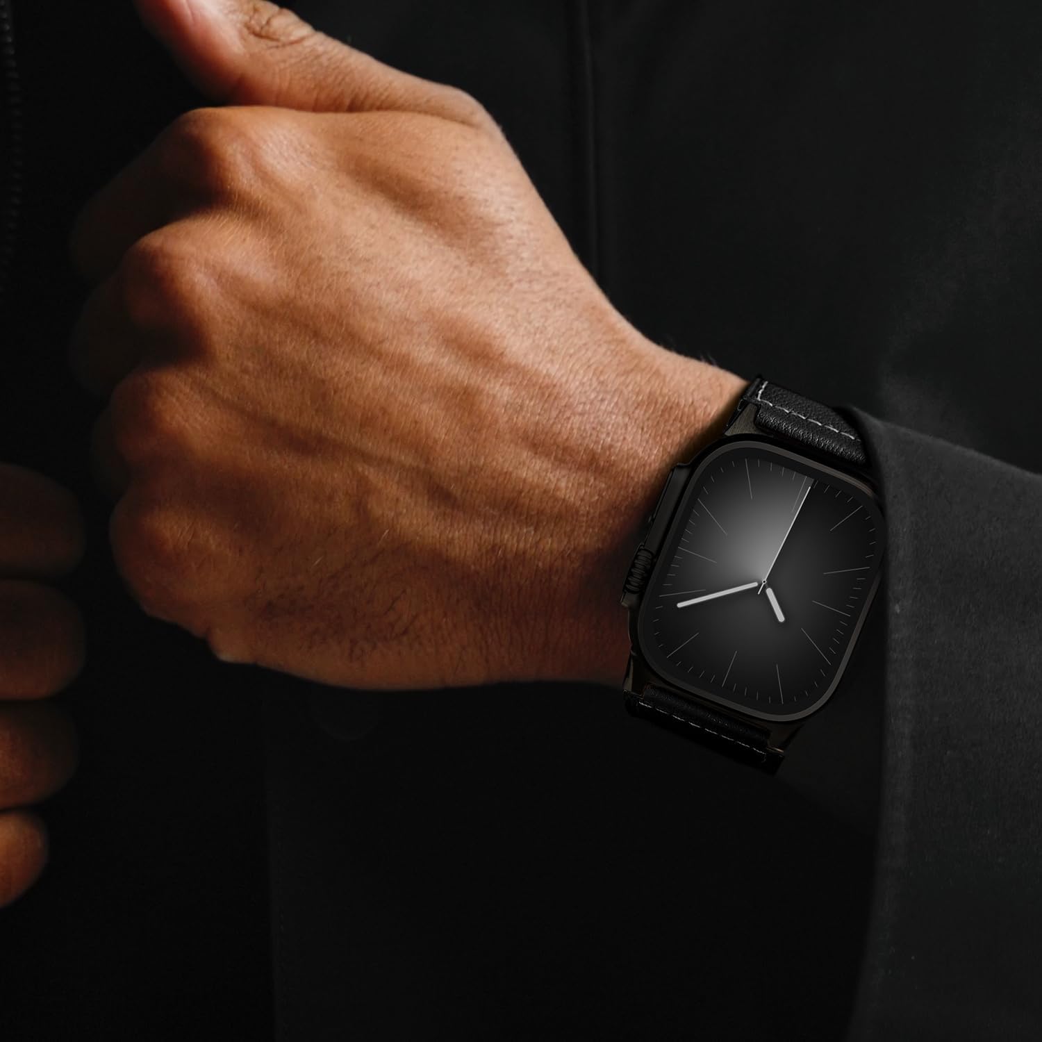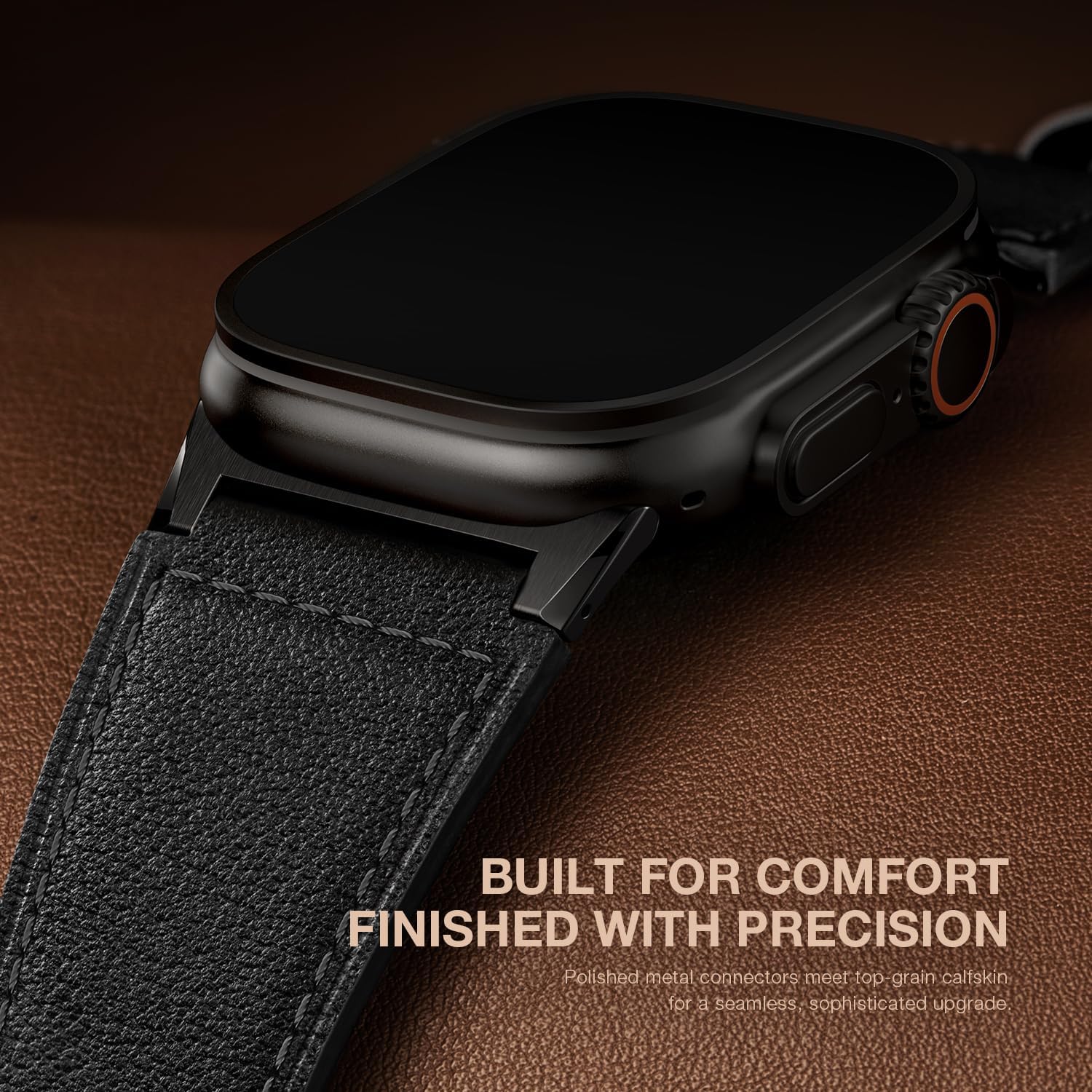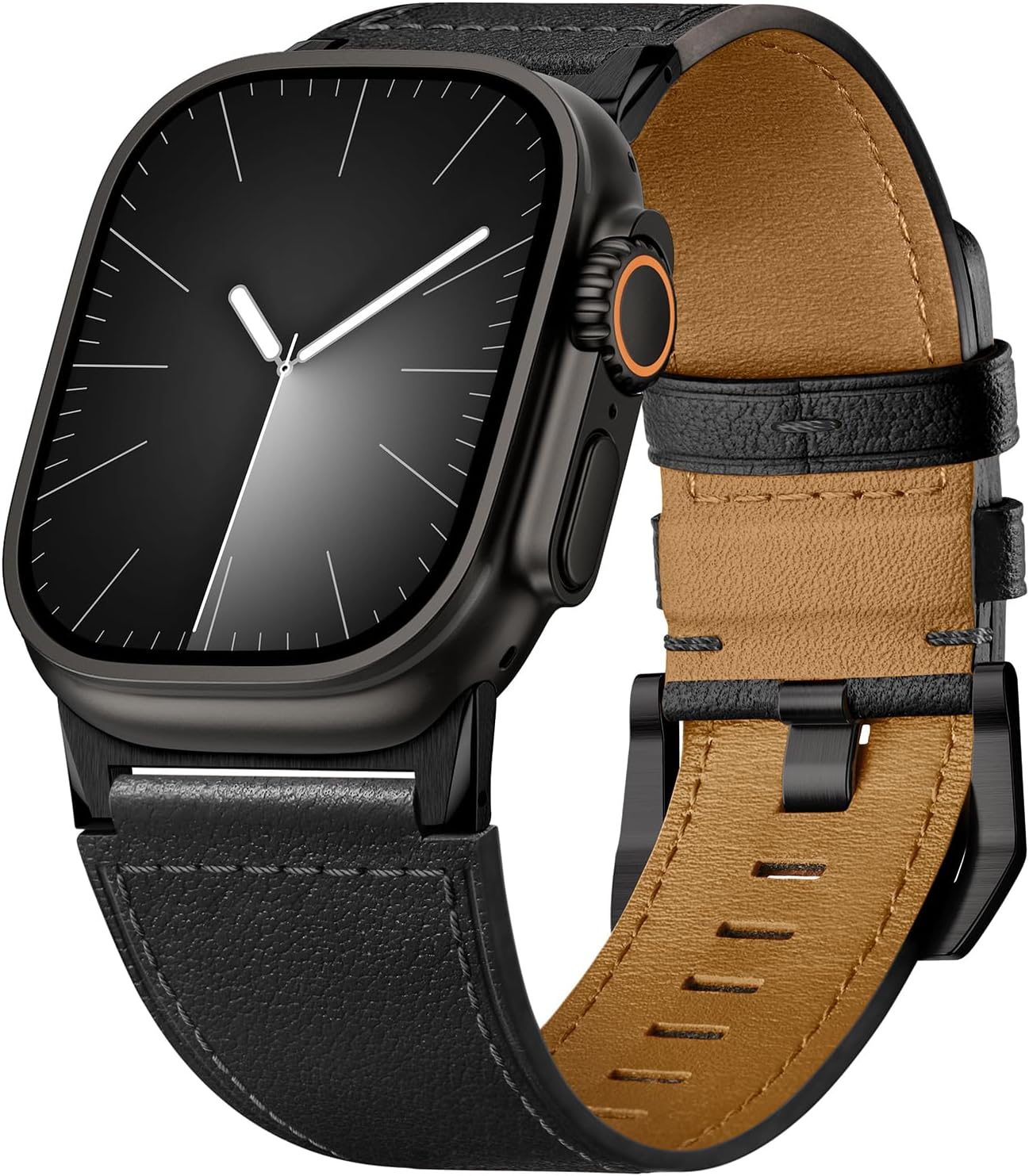 Suitisbest Leather Bands Compatible for Apple Watch Ultra Band 49mm 46mm 45mm 44mm 42mm, Genuine Calfskin Leather Replacement Strap Fits Men iWatch Series 11 10 9 8 7 6 5 4 3, SE 3 2 1, Ultra 3 2 1
