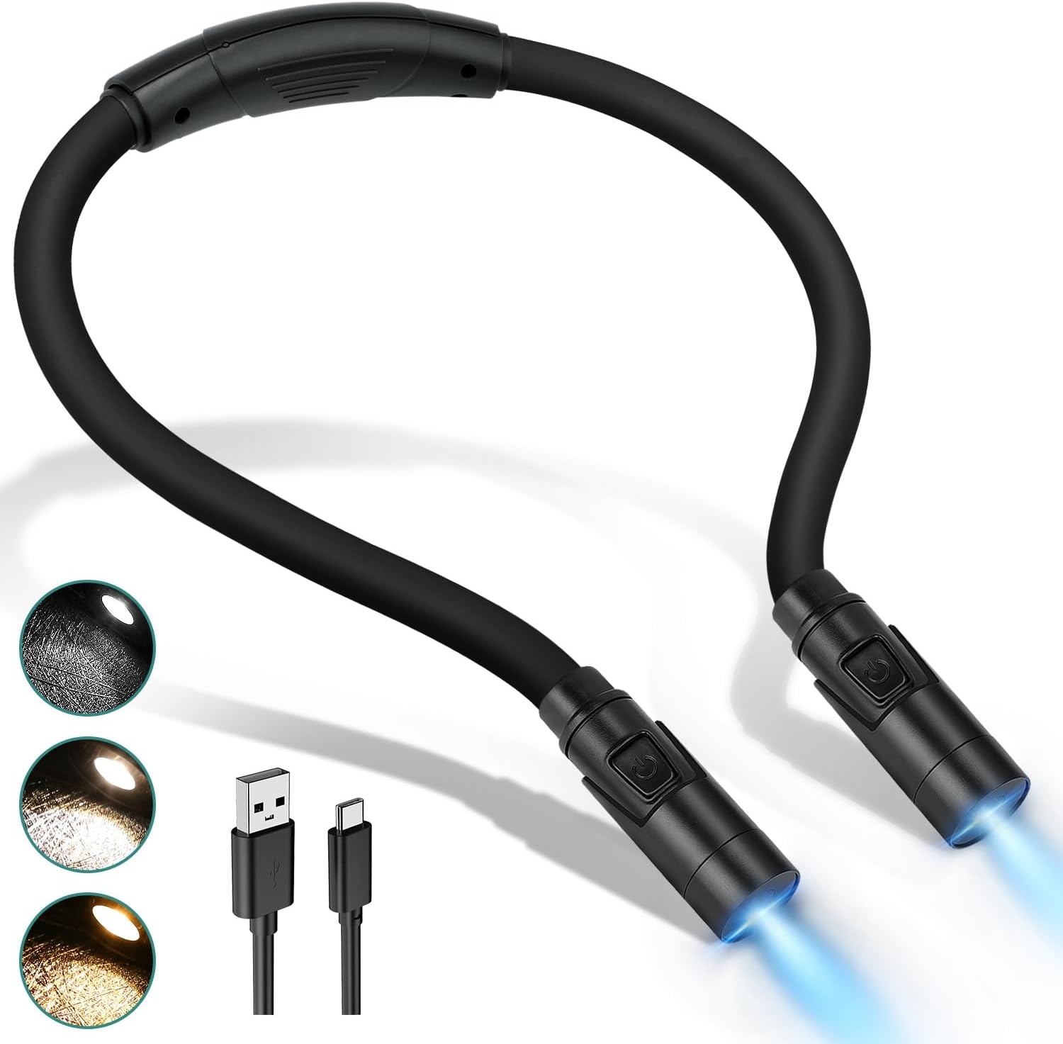 🔋 【USB-C Fast Charging & Long Battery Life】This rechargeable neck light features a built-in 1000mAh battery that offers a wide range of usage time from 8 to 80 hours on a single charge, depending on brightness level. It includes a convenient Type-C cable and supports charging via wall adapter, computer, power bank, or car charger. Fully charges in just 2–4 hours, keeping you illuminated for days.