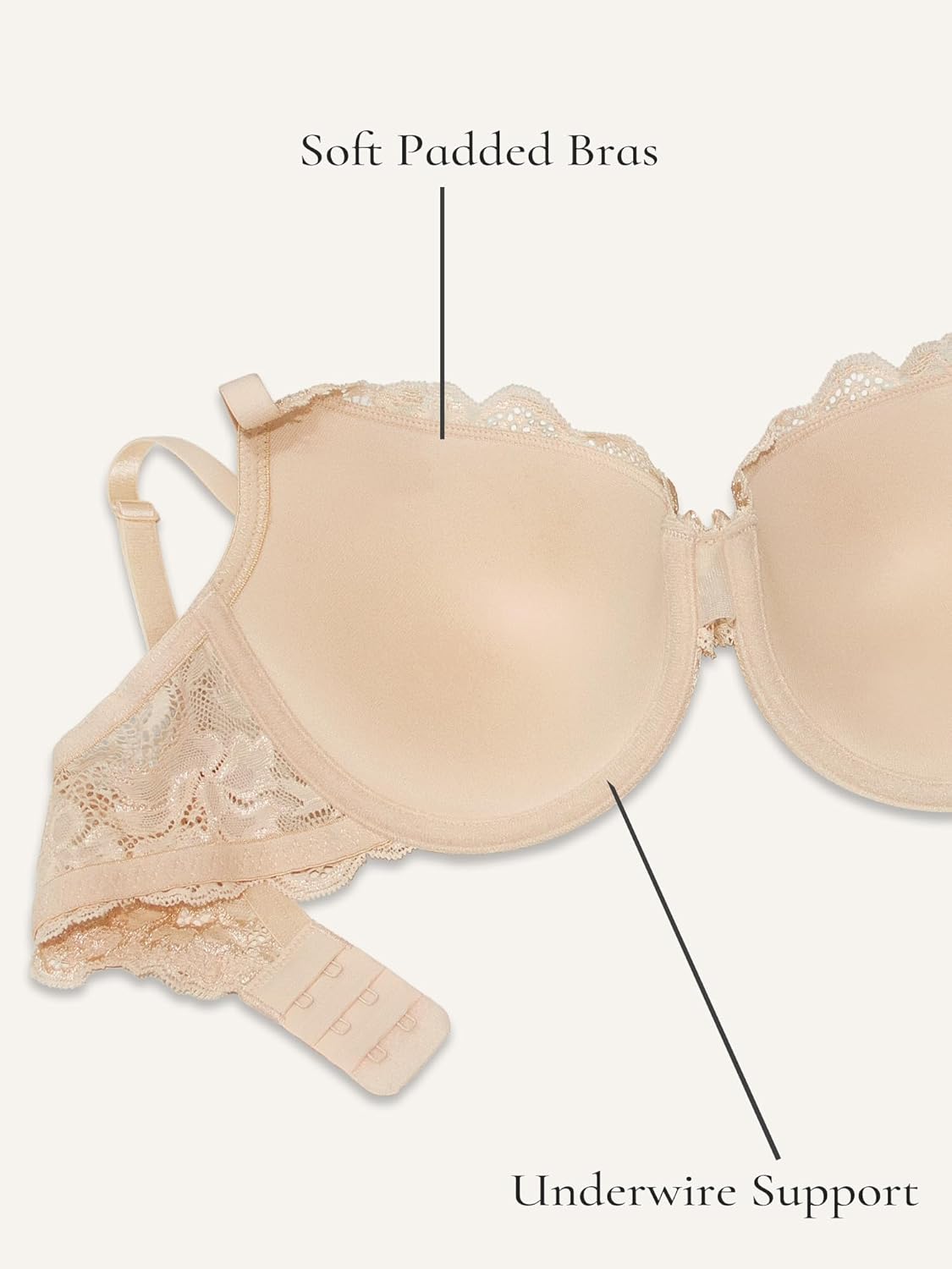 Push Up Bras for Women Sexy Lace Lightly Padded Demi Bra Uplift Comfort Underwire