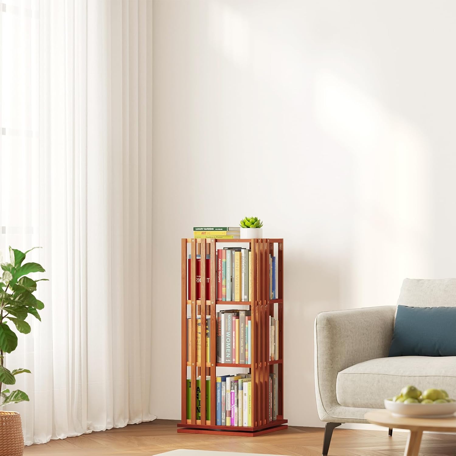 SpaceAid 3 Tier Rotating Bookshelf Tower, Bamboo Spinning Book Shelf, Revolving 360 Bookcase Storage Swivel Round Carousel, Vertical Rotate Turning Spiral Corner Organizer (3-Tier Walnut)