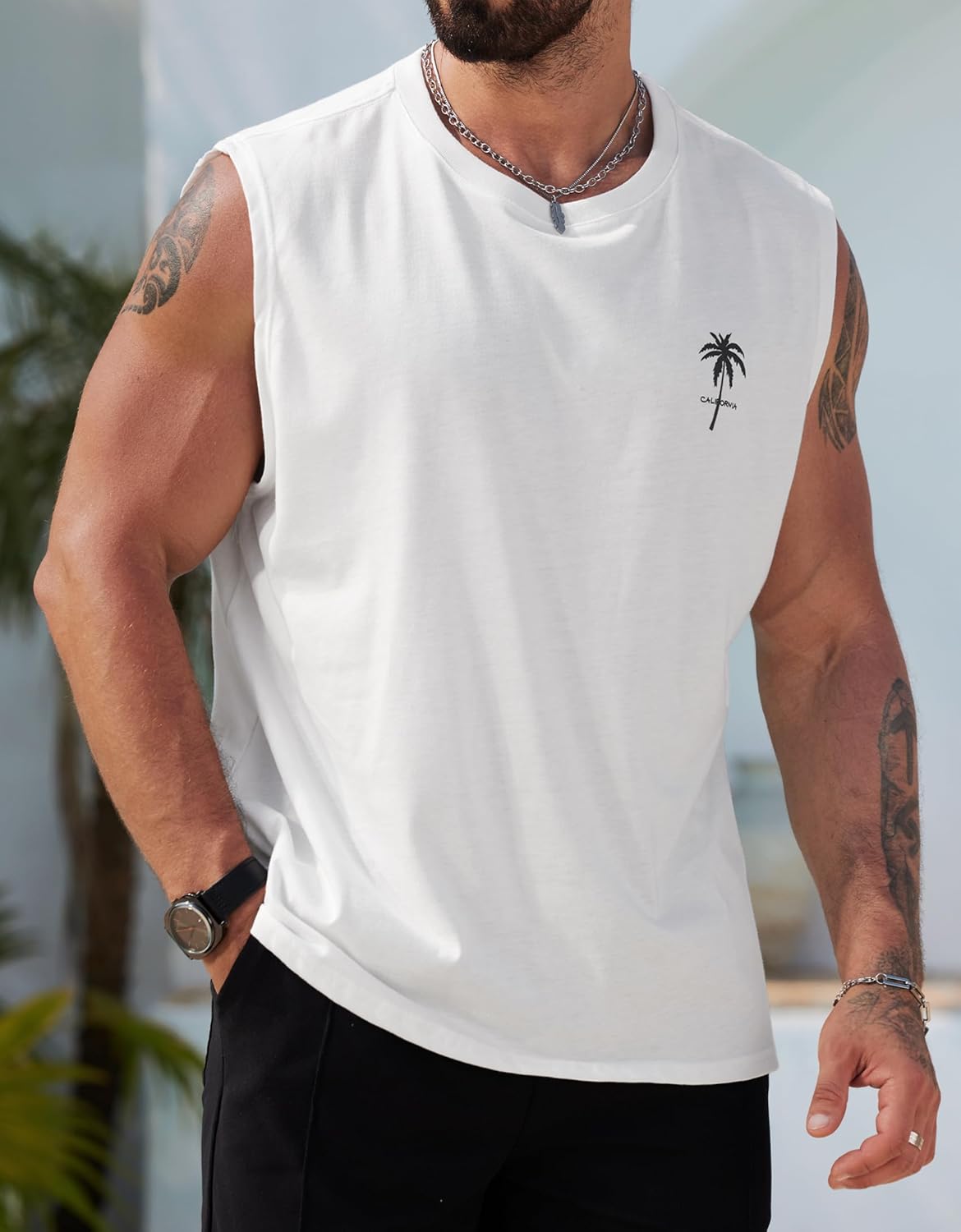 Mens Beach Summer Tank Tops Palm Tree Graphic Vacation Muscle Sleeveless Shirts (S-3XL)