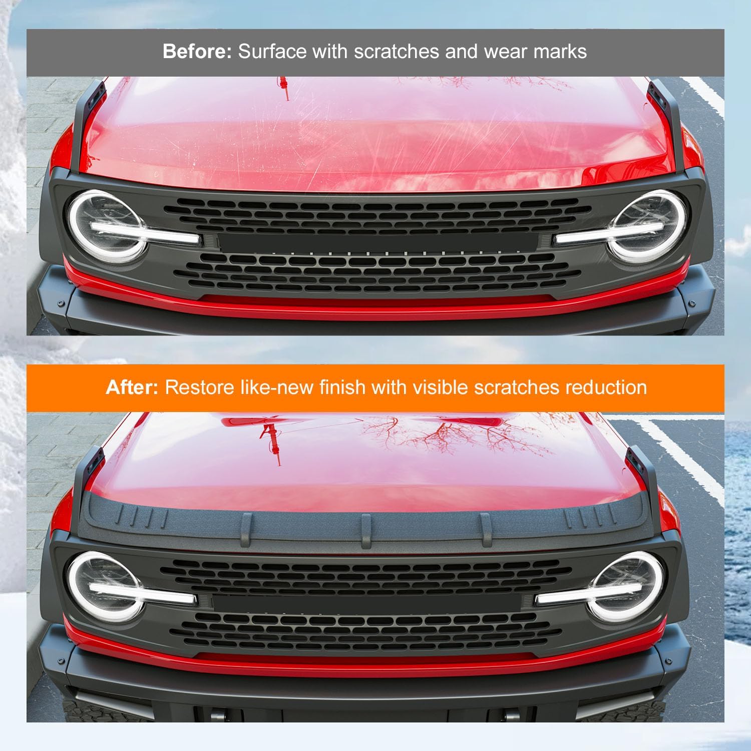 Premium Material: Our mat replacement for 2021-2025 Ford Bronco hood shield is made of high quality TPE material, which is highly long-lasting even in extreme weather conditions. It is heat-resistant, wear-resistant and scratch-resistant. This material is not only incredibly strong, capable of withstanding the impact of flying rocks, gravel, and debris on the road, but also resistant to UV rays. Our mat can withstand all kinds of extreme weather, such as heavy rain or snowstorm days, etc.