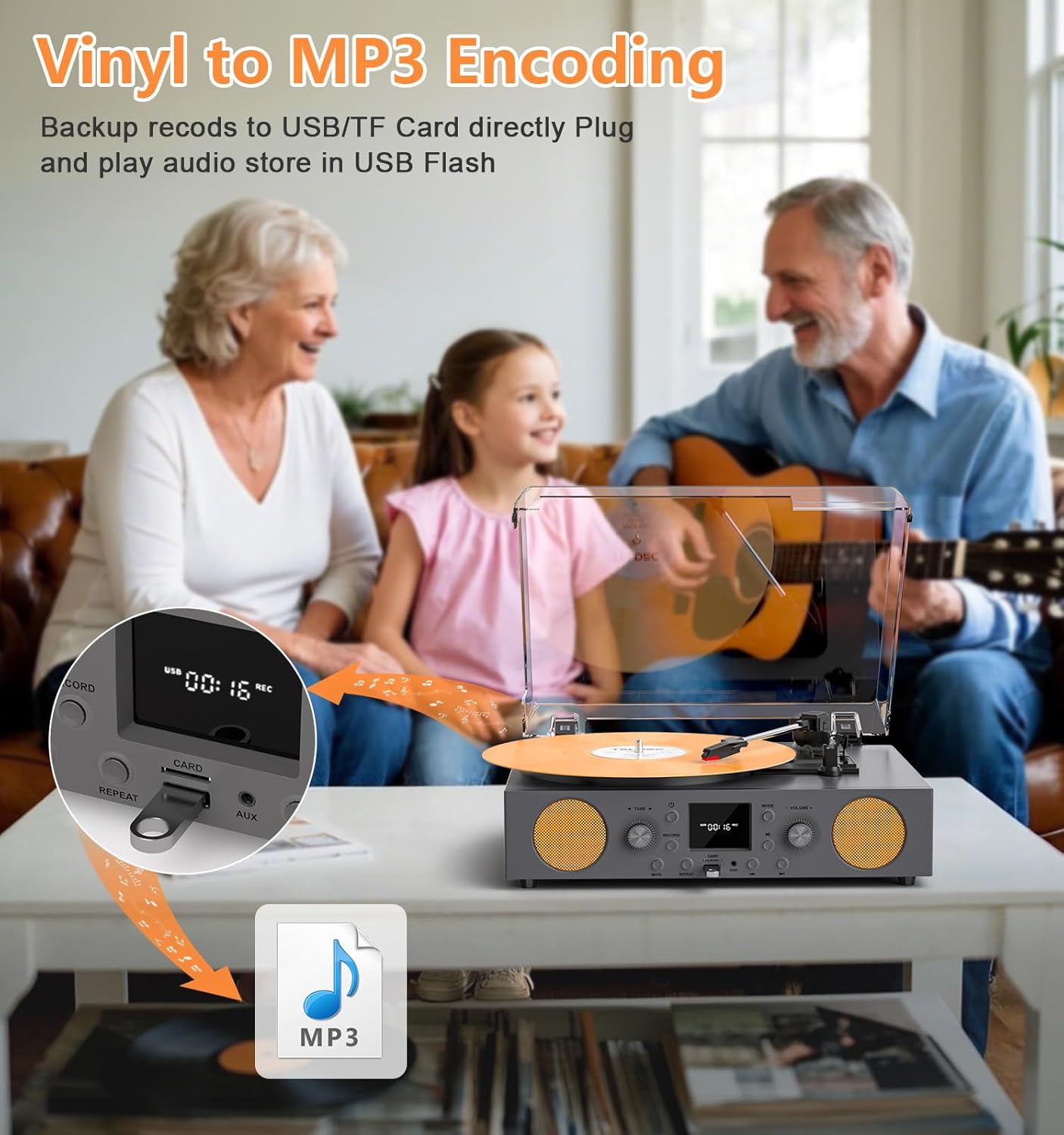 【RECORDING LP to MP3】Turn your vinyl collection into digital files with the ability to convert records to MP3 format via USB input. Easily record and store your favorite tracks on USB storage devices for convenient playback anytime, anywhere