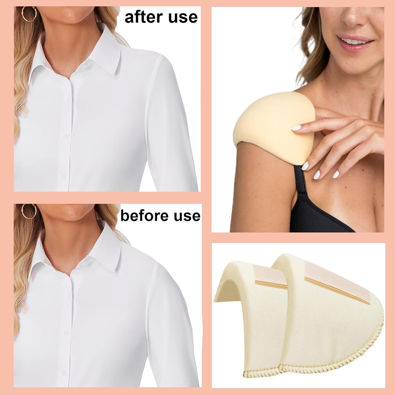 【Adhesive Sponge Shoulder Pads】womens shoulder pads can be used in 2 ways,as it has an adhesive strip,can be directly attached to the bra straps or the lining of clothing, easy to use and quick to remove. Shoulder pads for women can also be sewn onto clothing to make them more stable and less likely to fall off. Note: When used with adhesive, foam shoulder pads will wear out your bra shoulder straps due to friction.
