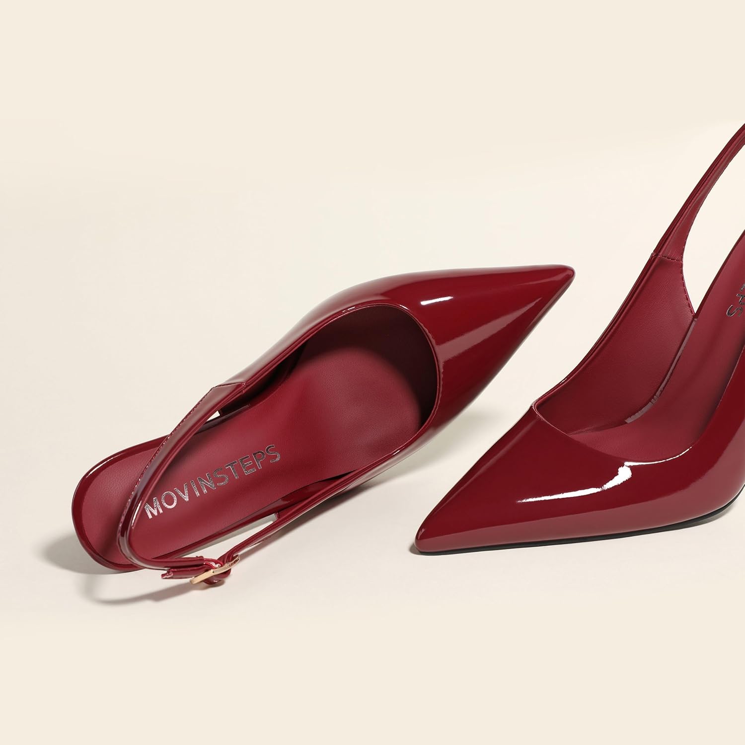 MOVINSTEPS Slingback Heels for Women Pumps Pointed Closed Toe Buckle Sexy Stiletto High Heels Prom Office Work Wedding Fashion Elegant Dressy Shoes 4 Inch