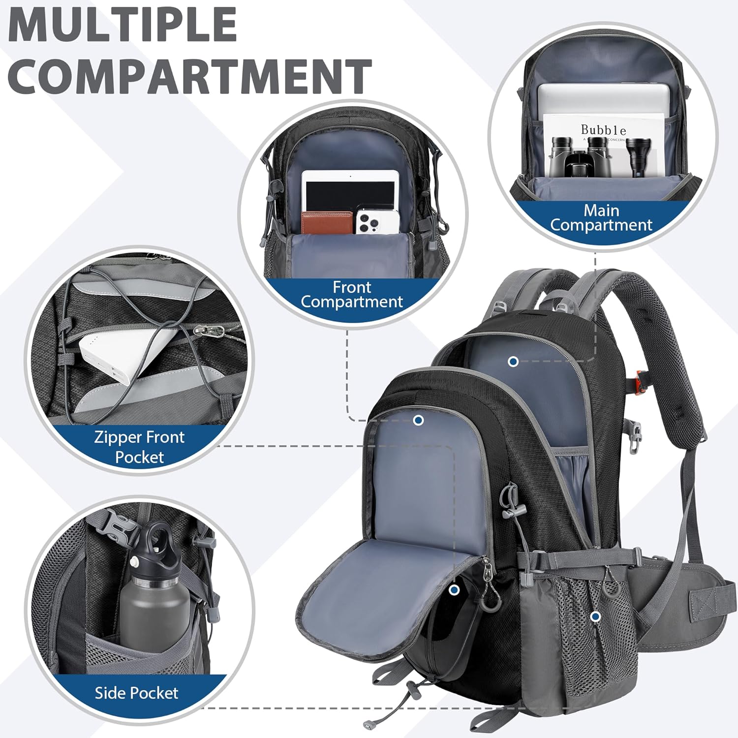 Multiple Compartments for Organization: With multiple pockets and compartments, this camping backpack allows you to keep your items organized. You have quick and easy access to hiking essential