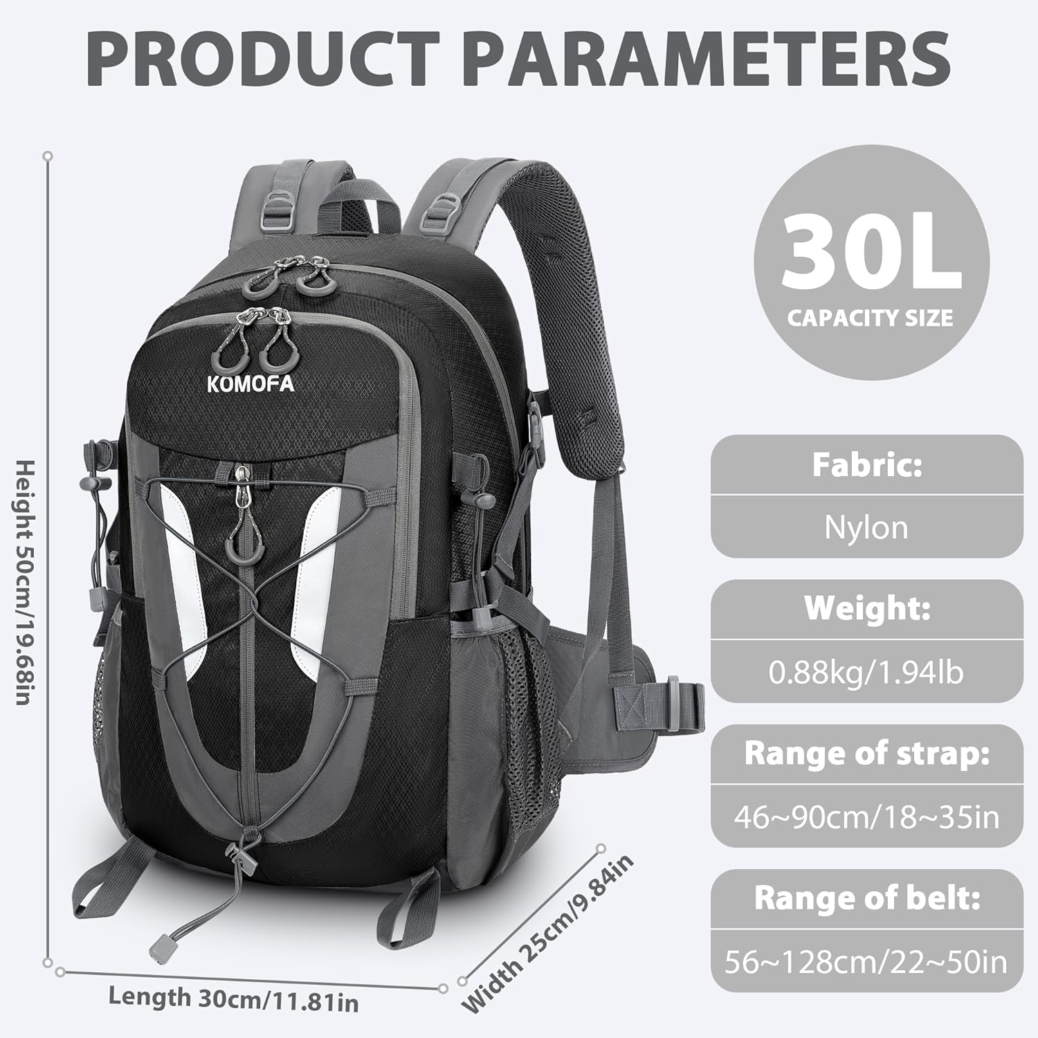 Spacious 30L Capacity: This hiking backpack offers a large 30L volume, perfect for day hikers. It has enough room to stow your snacks, clothes, maps, and essential hiking gear, ensuring you're well-equipped for a full day on the trail