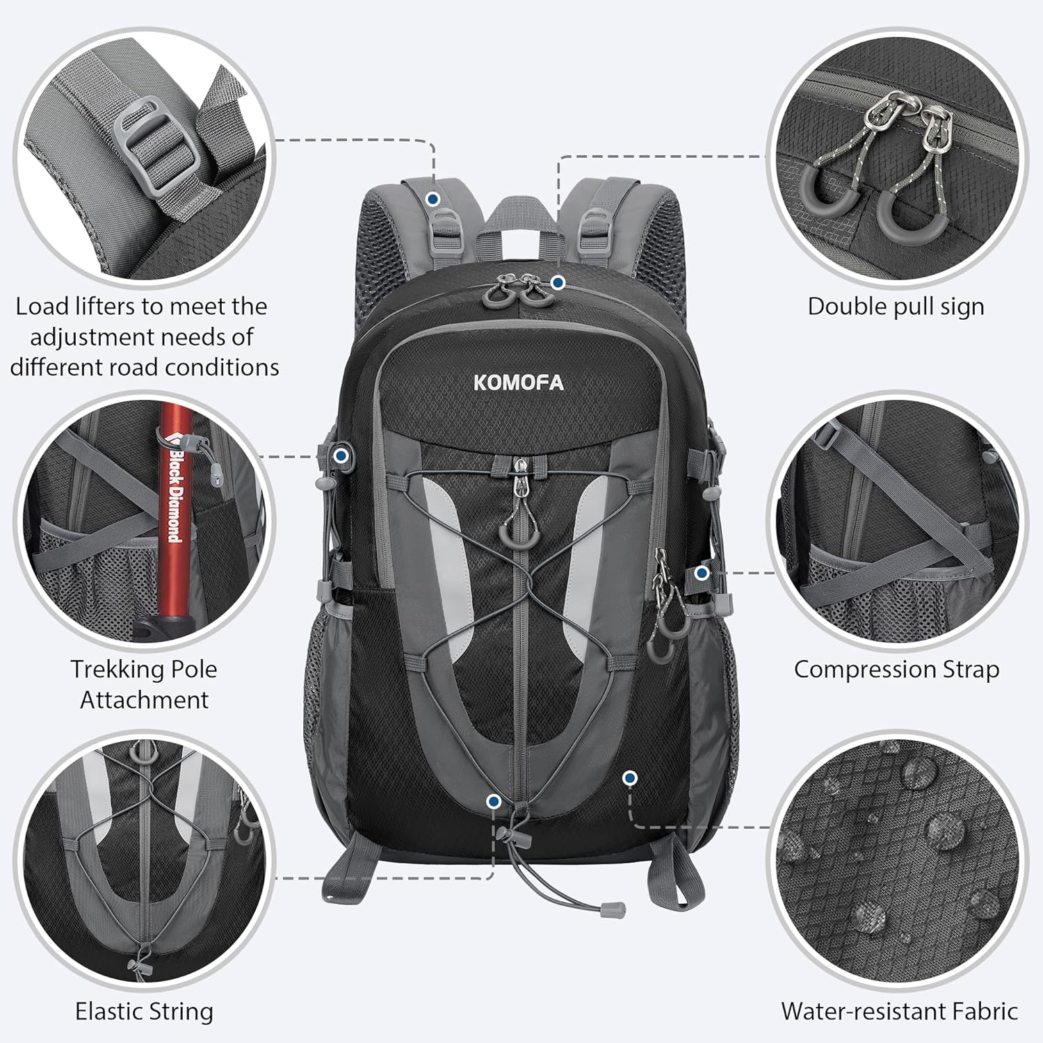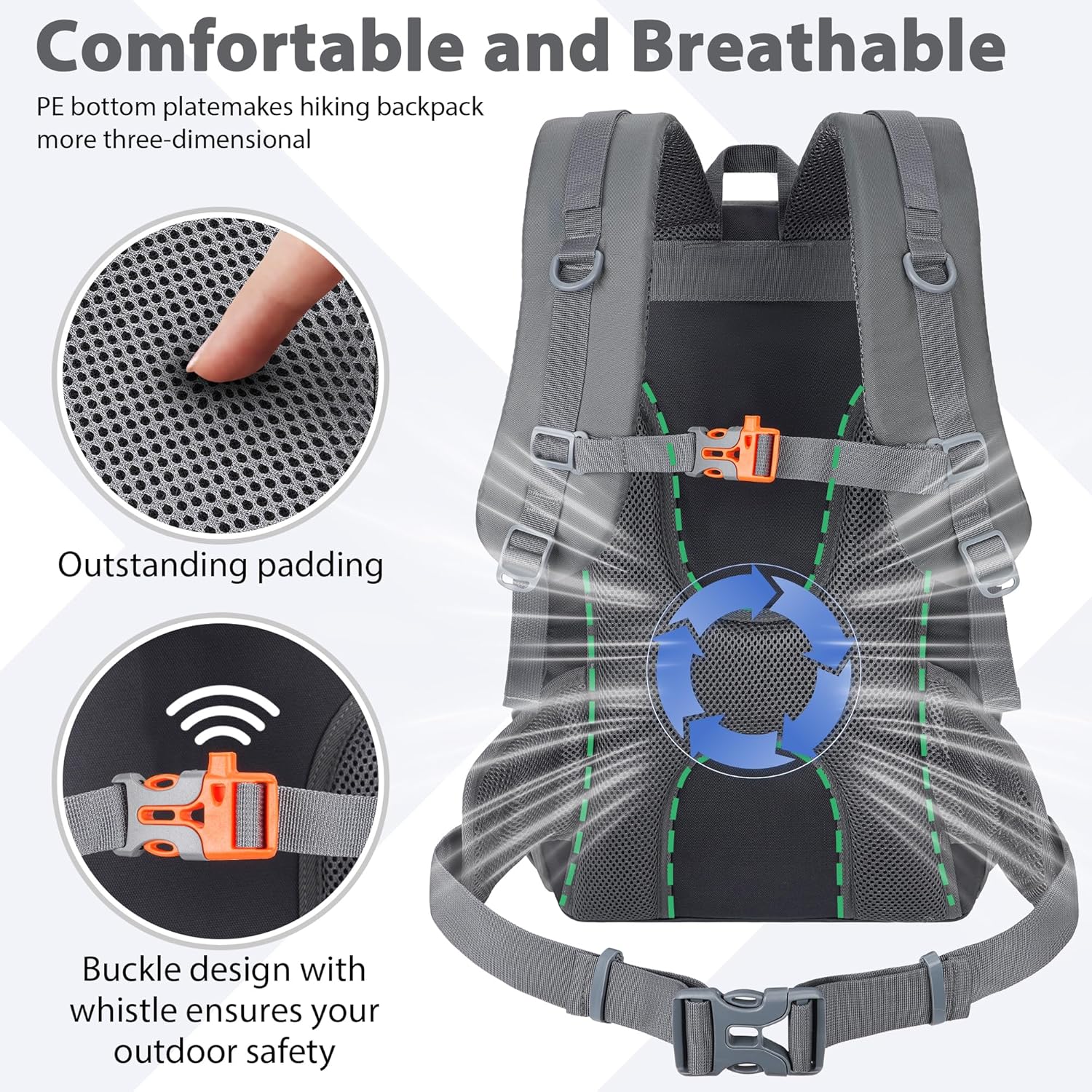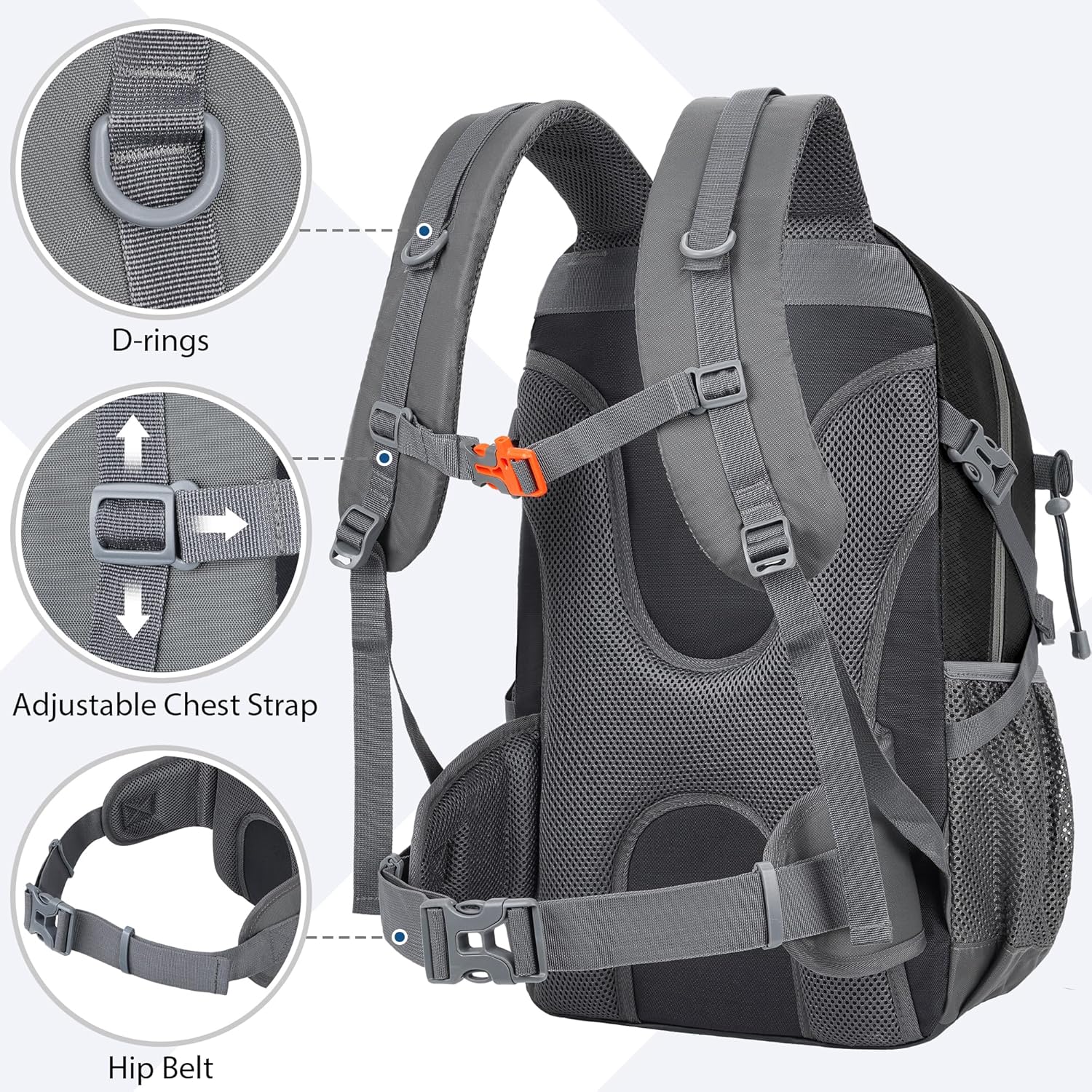Durable & Lightweight: The 30L hiking daypack is made of 420D nylon fabric, which is water-resistant, tear-resistant, abrasion-resistant, and durable. Enjoy its long-lasting durability without the burden of extra weight