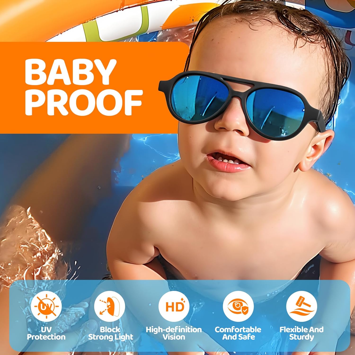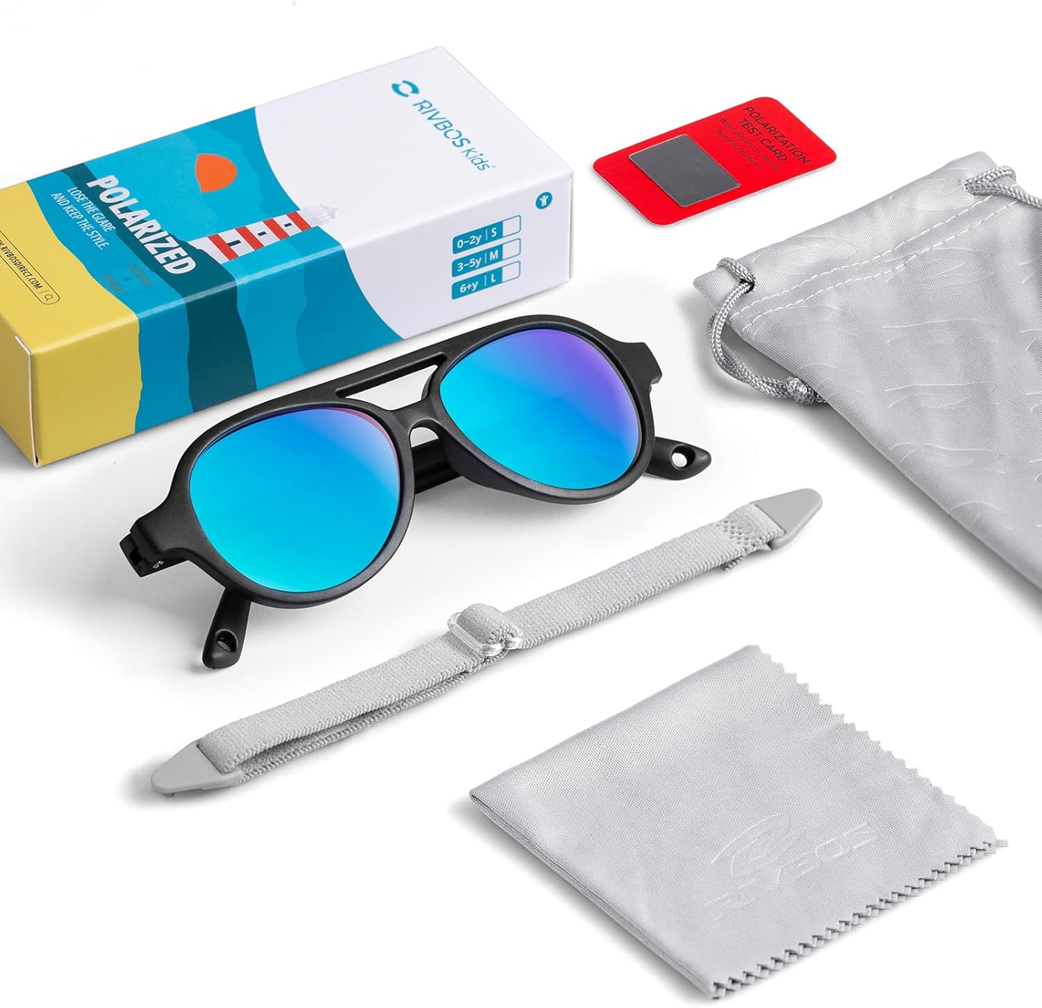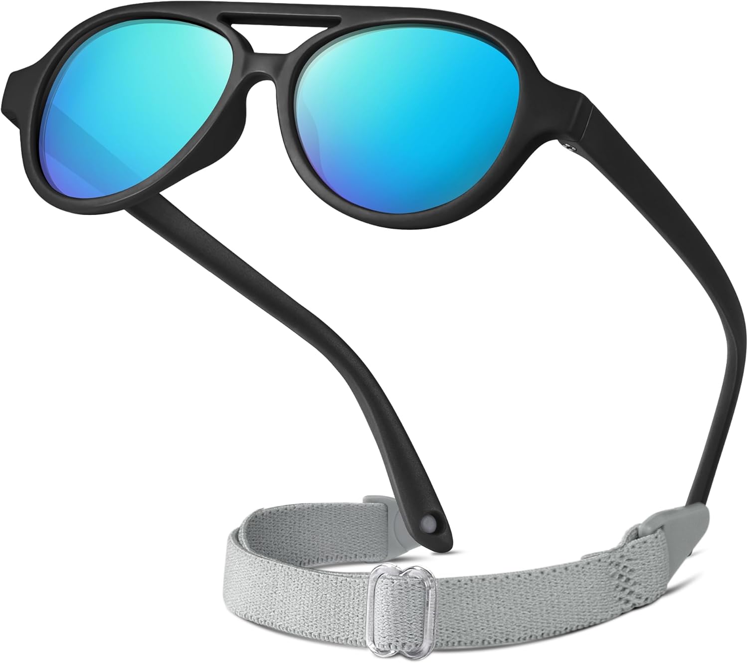 RIVBOS Baby Wrap Polarized UV400 Sunglasses - Soft Frame with Secure Strap for Infant and Newborn (0-24 Months) RBK068