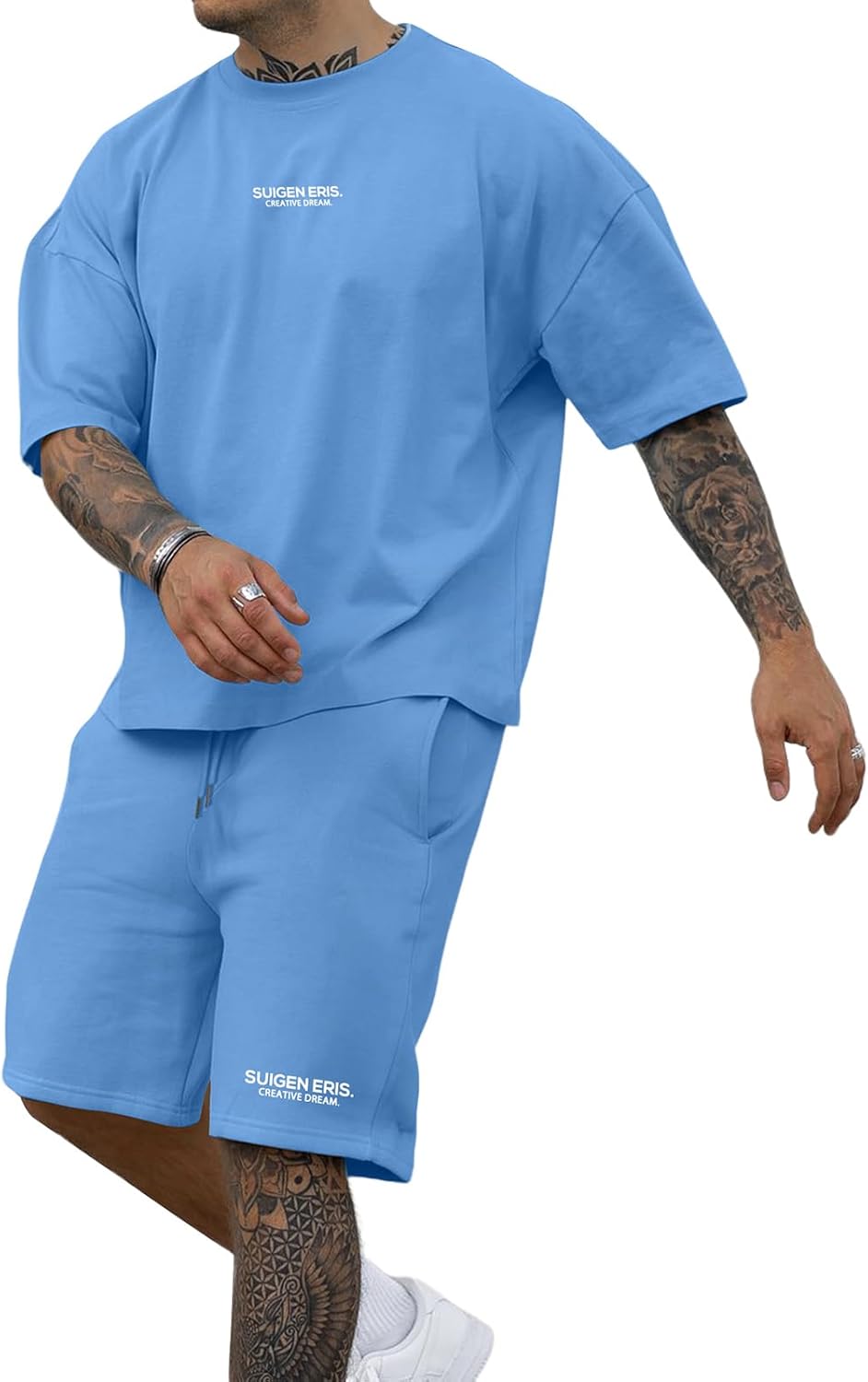 Ryehack Men's 2 Piece Outfits Short Sleeve Crew Neck Summer T Shirt and Drawstring Casual Track Shorts Sportswear Sets