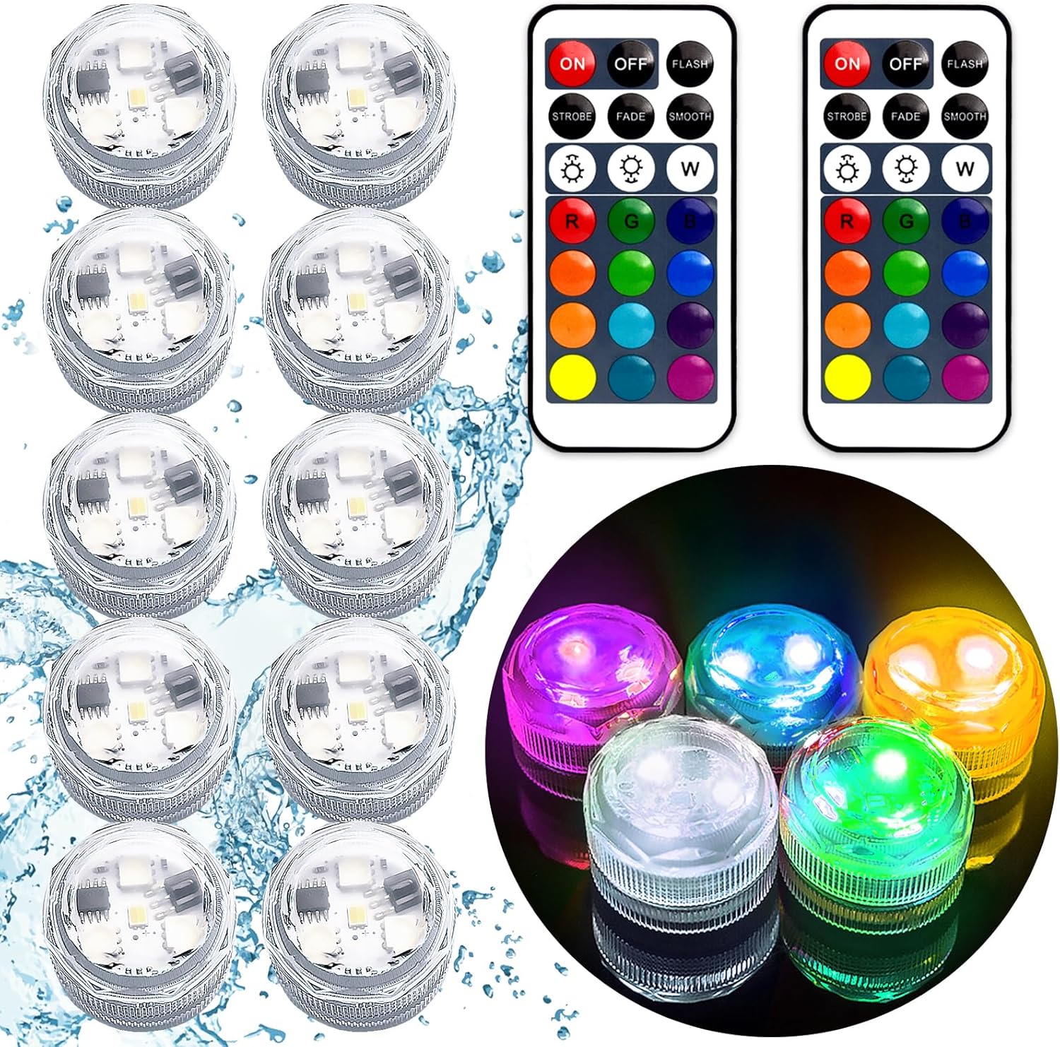 【Simple Operation, Easy to Carry】: Small Underwater Tea Lights Candles is easy to operate, it is turned on and off by operating the thread to screw the mouth. The package include: 10*submersible LED lights, 20*CR2032 batteries included in Lights and 2* Remote control