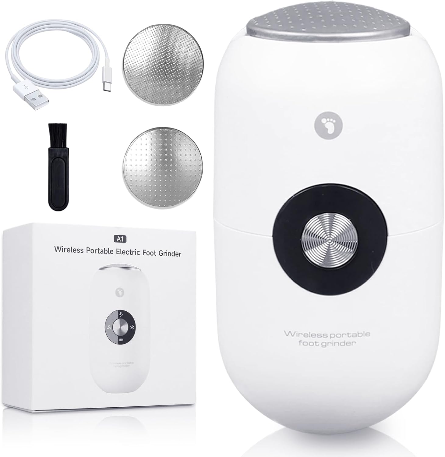 Electric Feet Callus Removers Rechargeable-Foot Scrubber Kit, Wireless Foot File with Metal 2 Grinding Head,3-Speed Pedicure Tools for Feet, Ped Egg for Dead Skin Heels and Hard Cracked Dry Skin