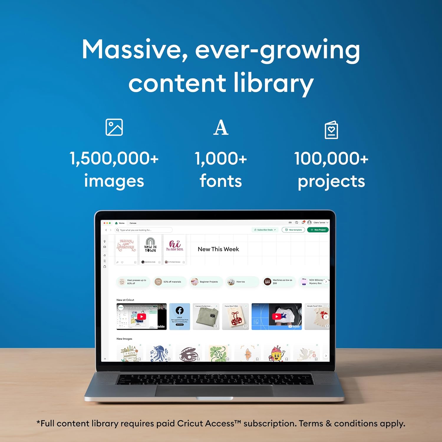 CREATE WITH OVER 1.5 MILLION IMAGES* – The ever-growing Design Space content library includes a total of 1,500,000+ images, 1,000+ fonts, and 100,000+ projects when you unlock our full library with our optional paid Cricut Access Subscription.*