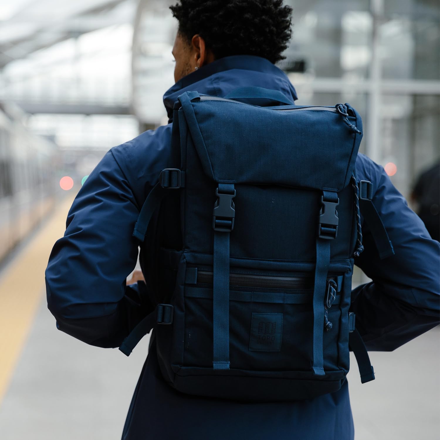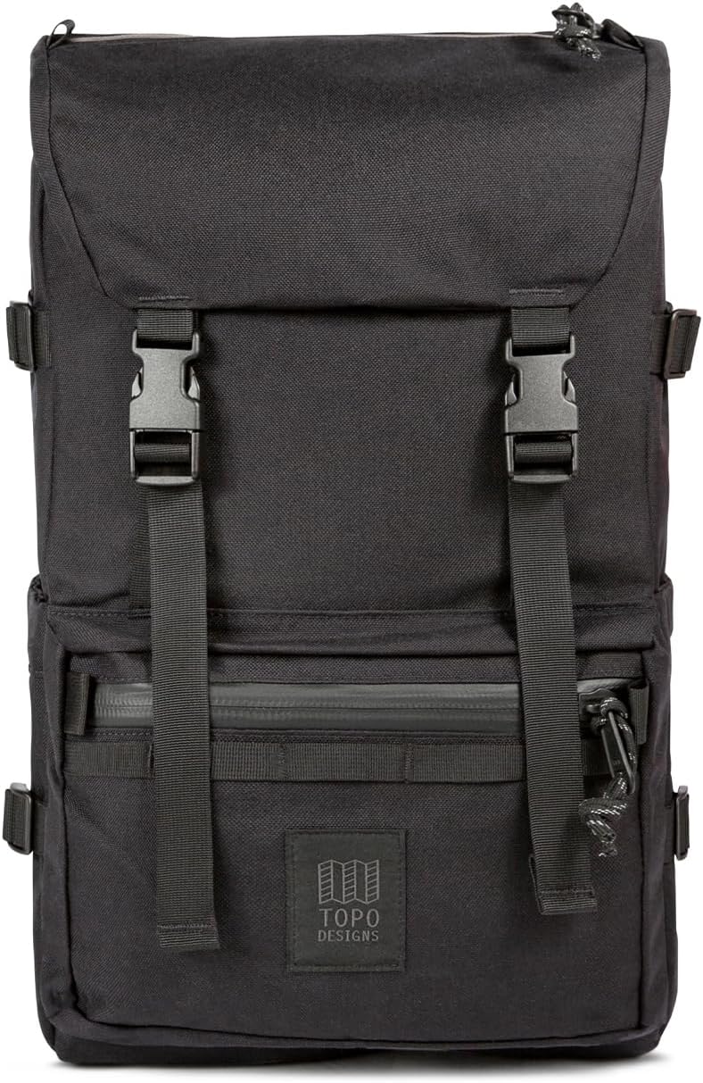 Topo Designs Rover Pack Tech - Daypack for Commuters, Iconic Denver Design, Recycled Nylon Construction (Black)