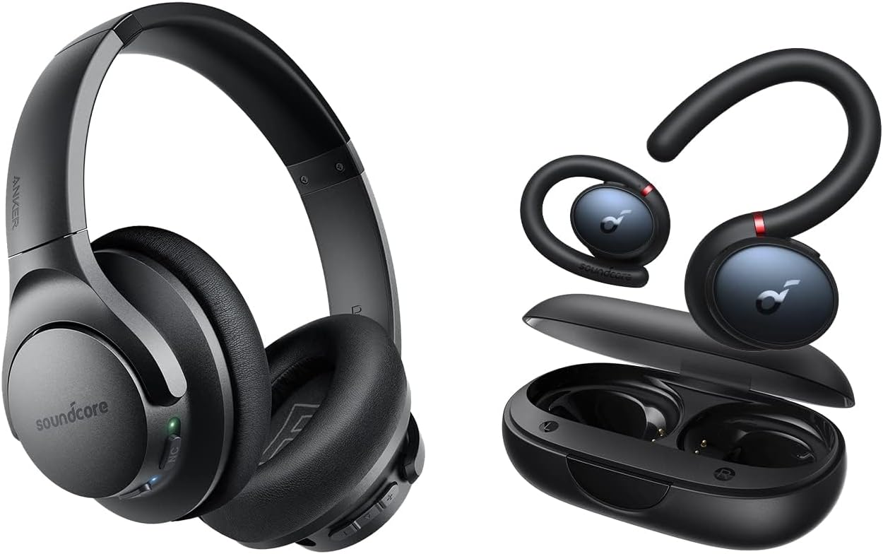 Soundcore by Anker, Sport X10 True Wireless Workout Earbuds, Rotatable Ear Hooks, Deep Bass, IPX7 Waterproof, Sweatproof, with Life Q20 Active Noise Cancelling Headphones, Hi-Res Sound