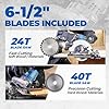 Adjustable Cutting Depth & Angle: Features a 6-1/2 inch blade with maximum cutting depth of 59mm (0°), 43mm (45°), and 39mm (50°), along with an adjustable cutting angle up to 50°, this saw offers versatility and precision for a wide range of cutting tasks.