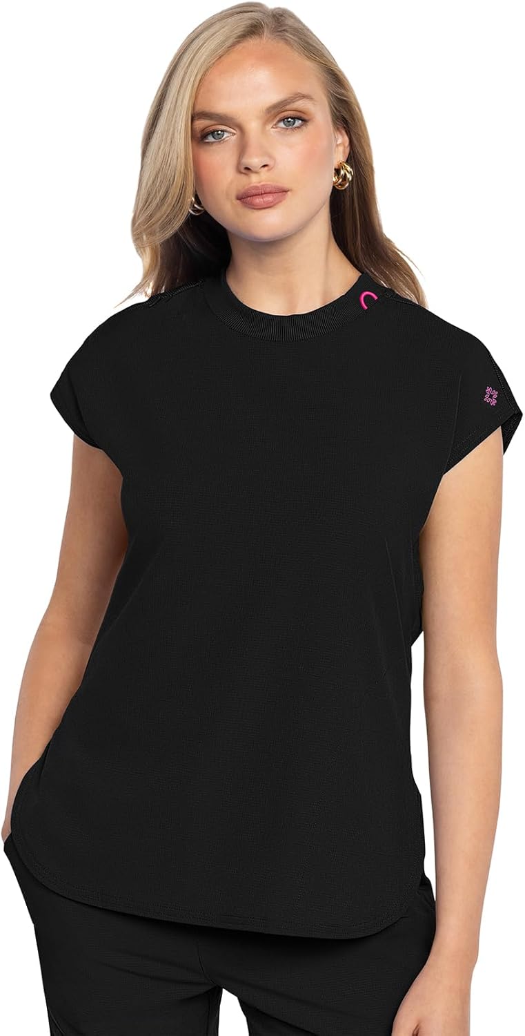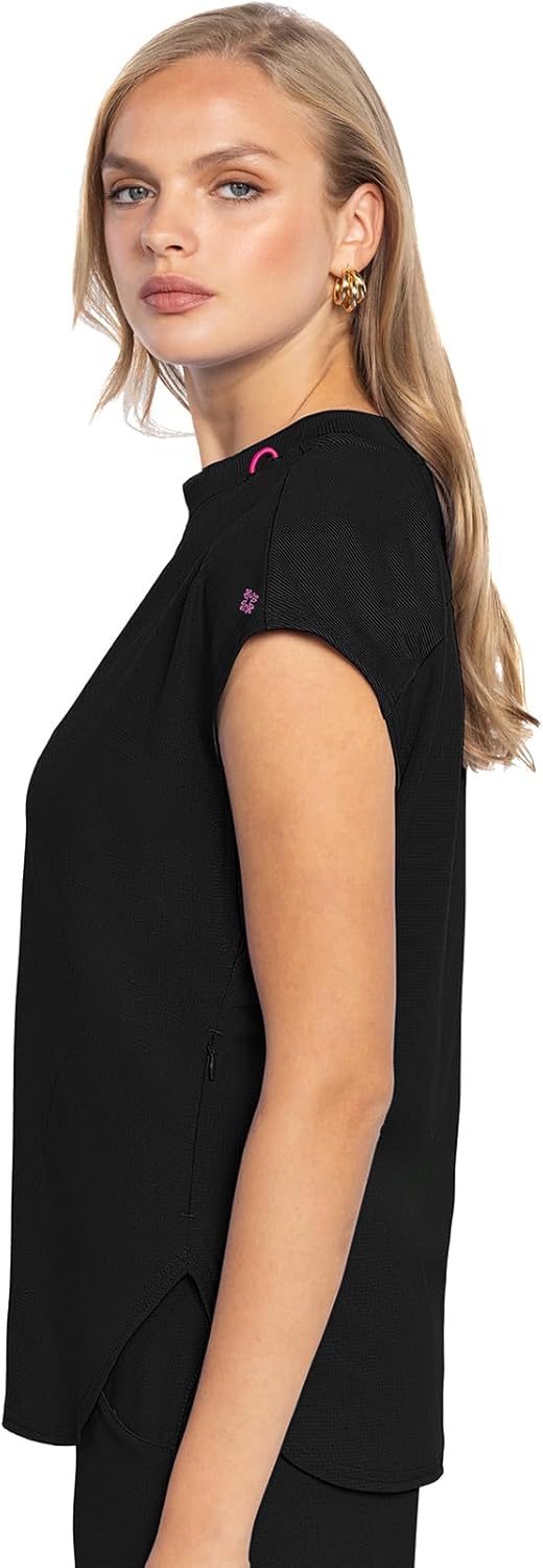 Med Couture Scrub Top Women Round Neck Tuckable with 2 Zipper Pockets with Rounded Hem MC703