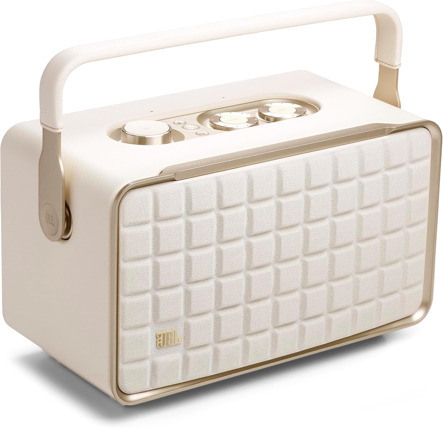 Inspired by retro design: The JBL Authentics 300 delivers iconic style inspired by JBL retro designs, in a home speaker that fits in any decor. Its cast-aluminum handle, leather-like enclosure, and Quadrex grille show the attention we paid to each detail.